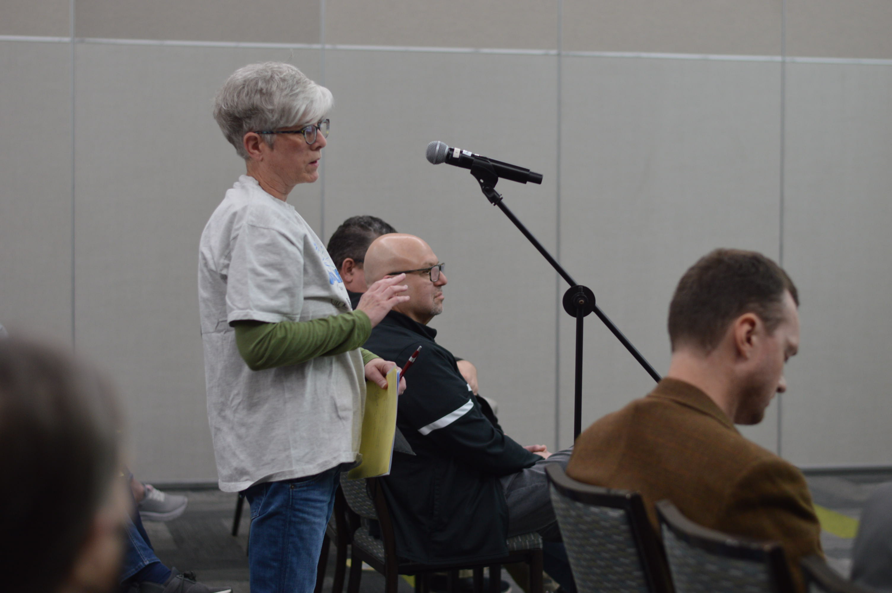 Mayuri “May” Farlinger, right, speaks during the public informational meeting on March 23, 2026. (photo/Cindy Hadish)