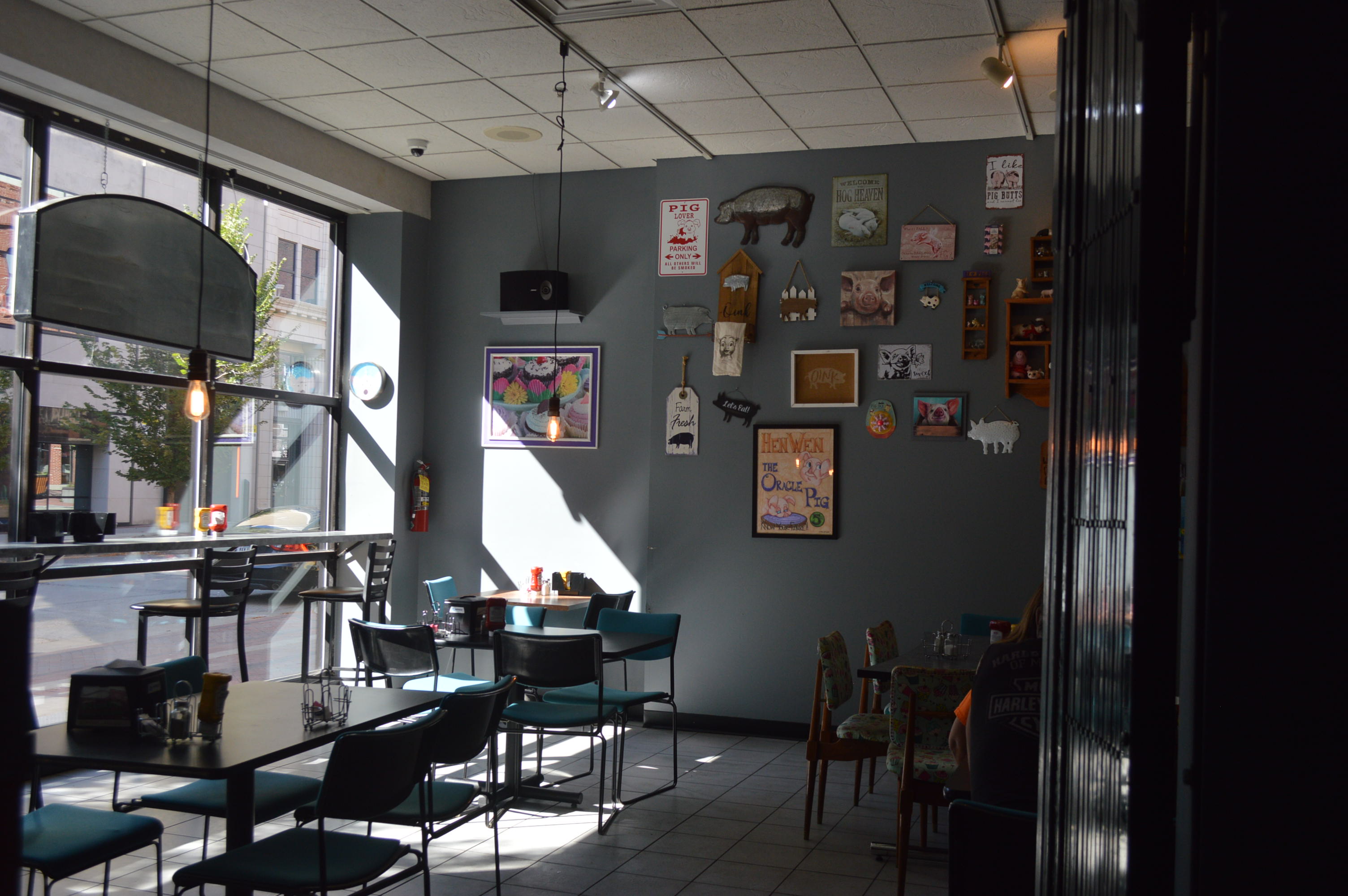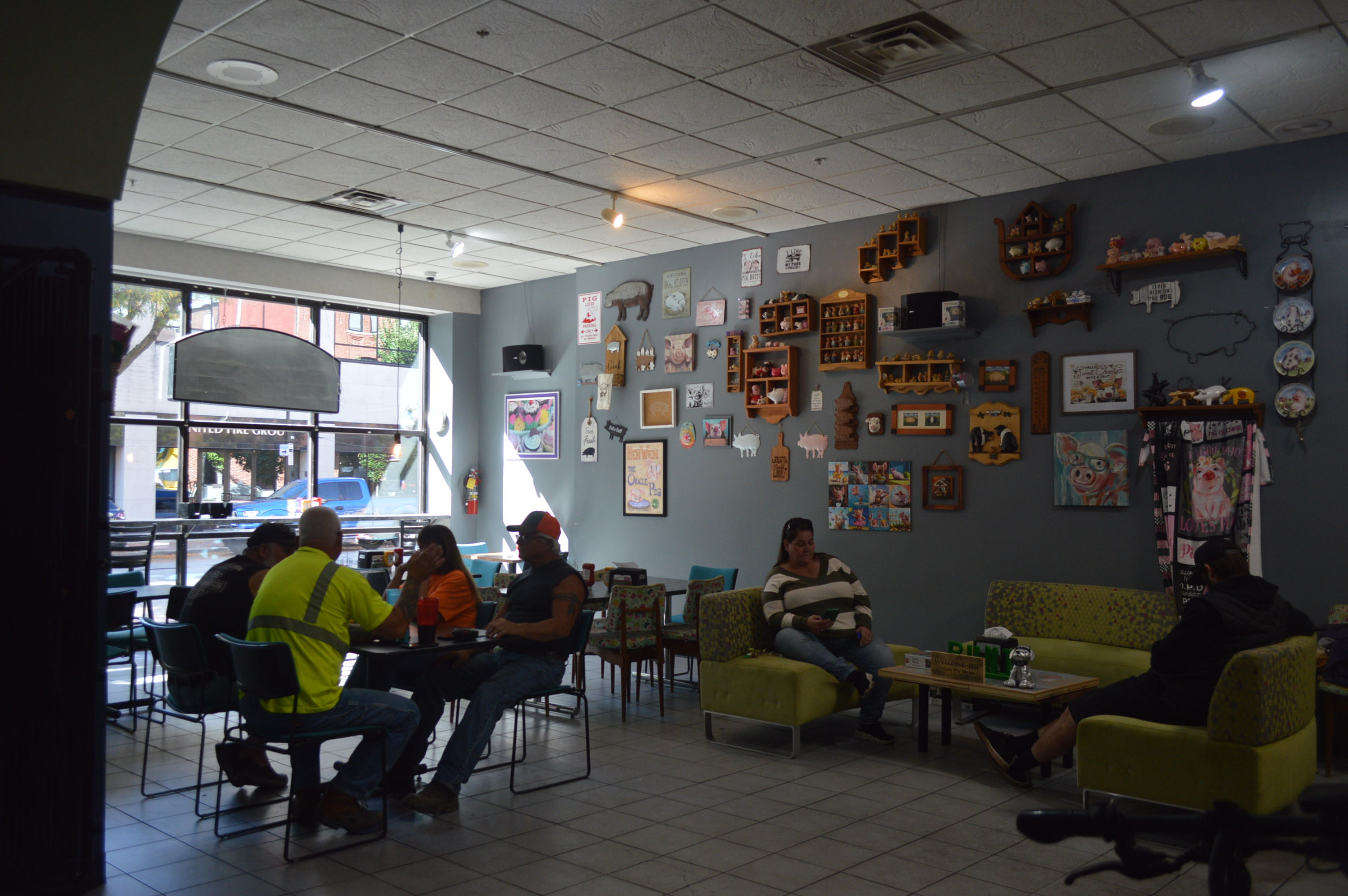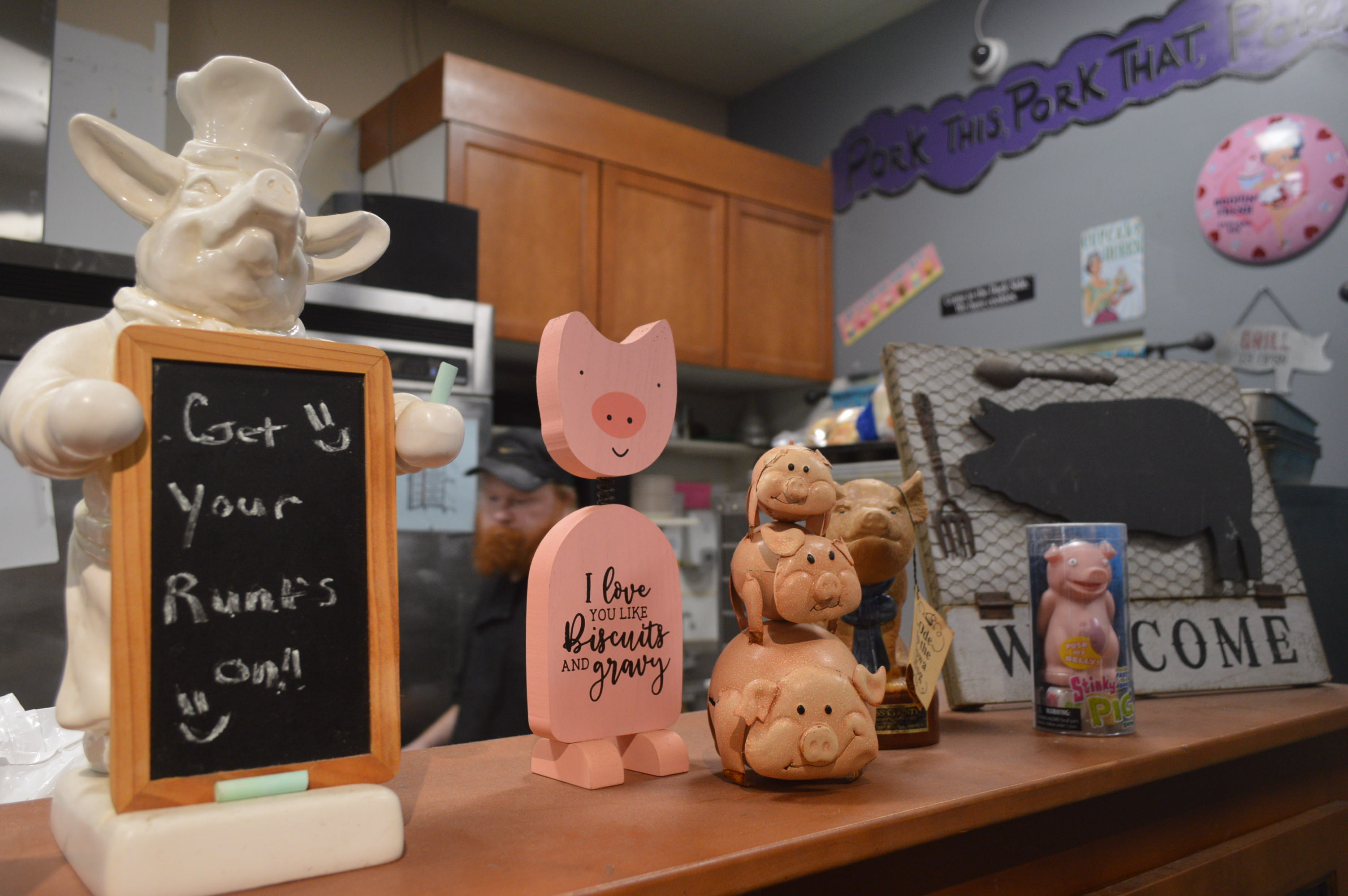 Quirky pig decor is seen Oct. 10, 2025, at Runt’s Munchies in downtown Cedar Rapids. (photo/Cindy Hadish)