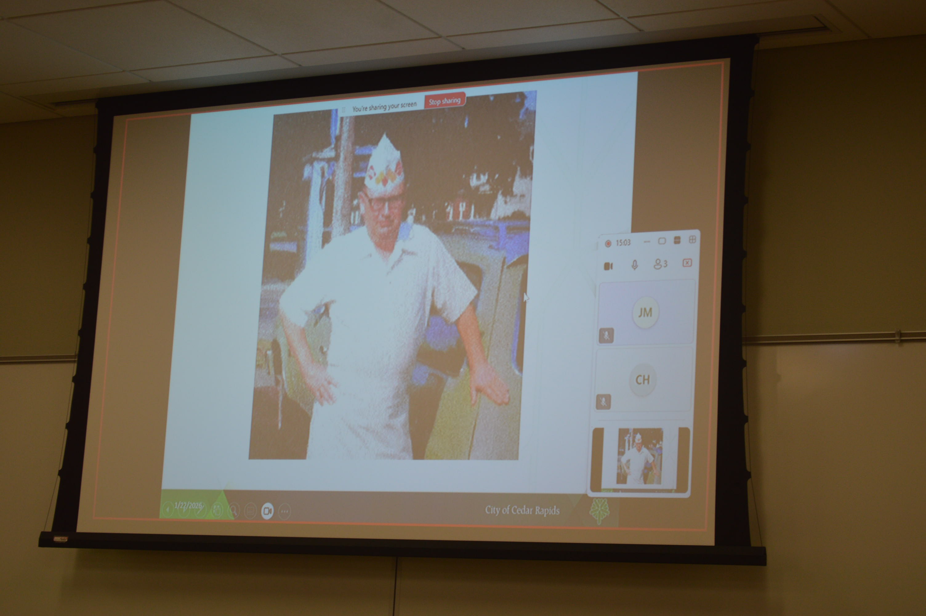 A photo of Don Myers, a past owner of the Dairy Queen with his wife, Mary Ann Myers, is shown during the Historic Preservation Commission meeting.