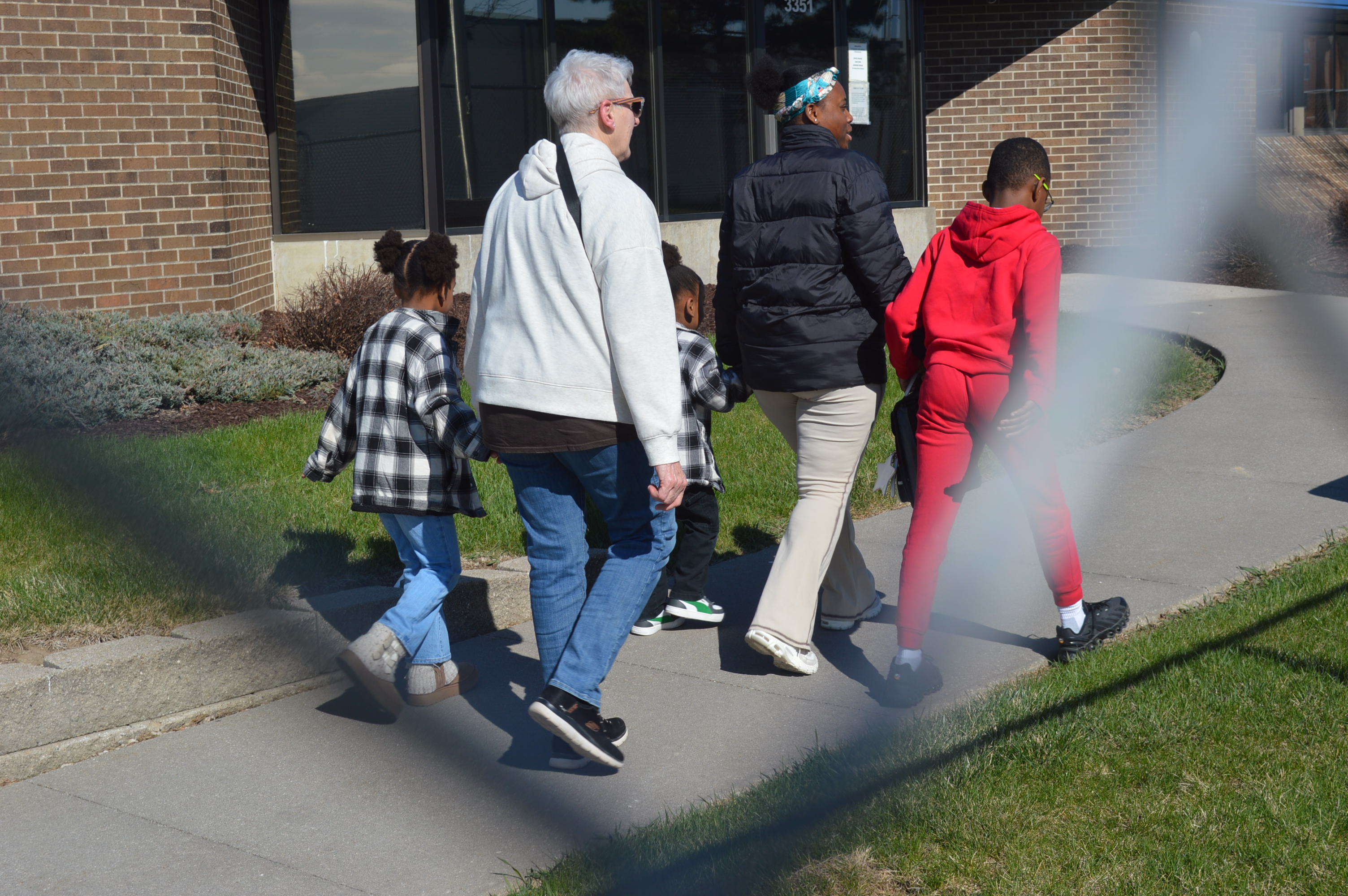 A family enters the ICE office in Cedar Rapids, Iowa, for an appointment on April 7, 2026. (photo/Cindy Hadish)
