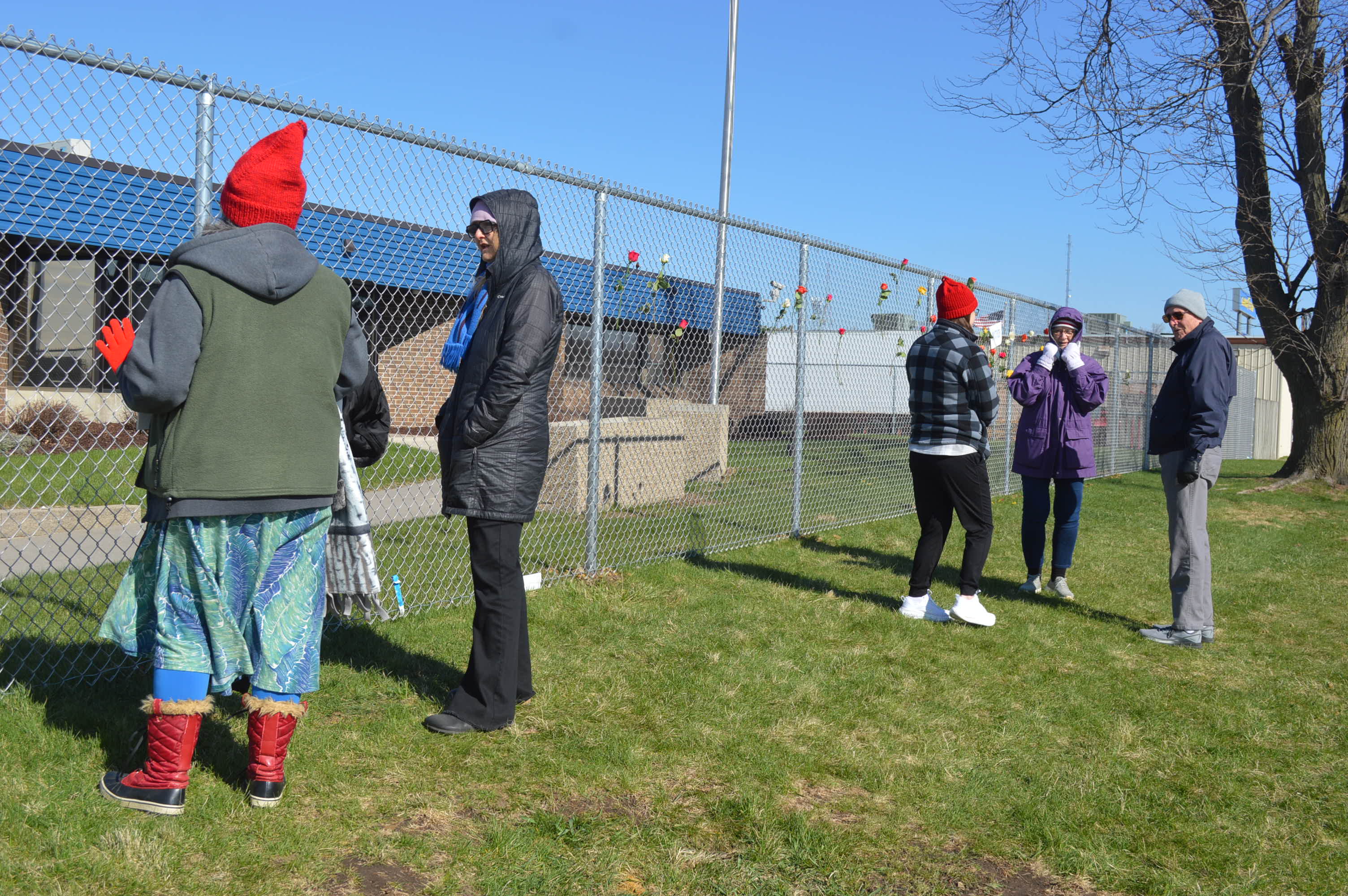 Four dozen roses were placed in the fence on Tuesday to symbolize the 48 known deaths of detainees in ICE custody, “a sign that even in the face of ICE, we choose love,” the Iowa City Catholic Worker group and Escucha Mi Voz Iowa noted.