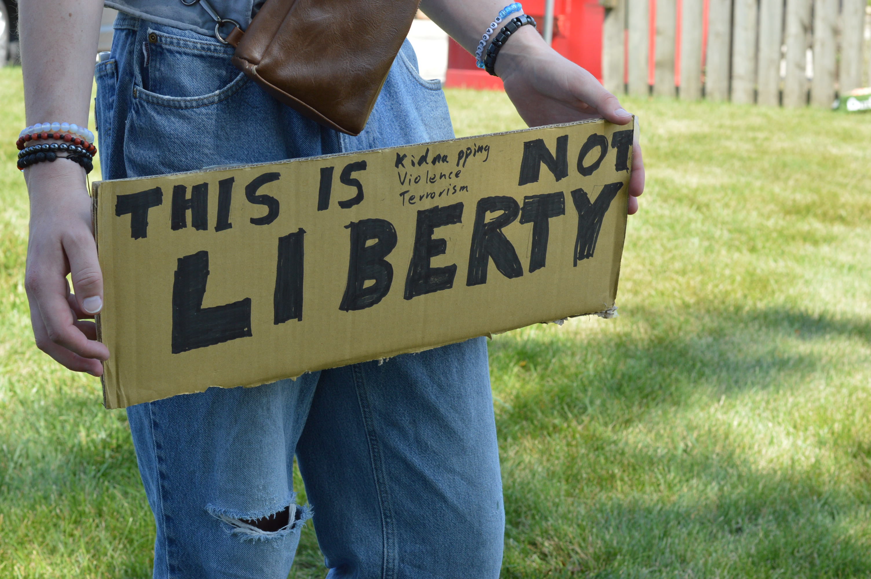 Demonstrators traveled to Cedar Rapids from Fairfax, Iowa City, and other Eastern Iowa towns, including West Liberty.