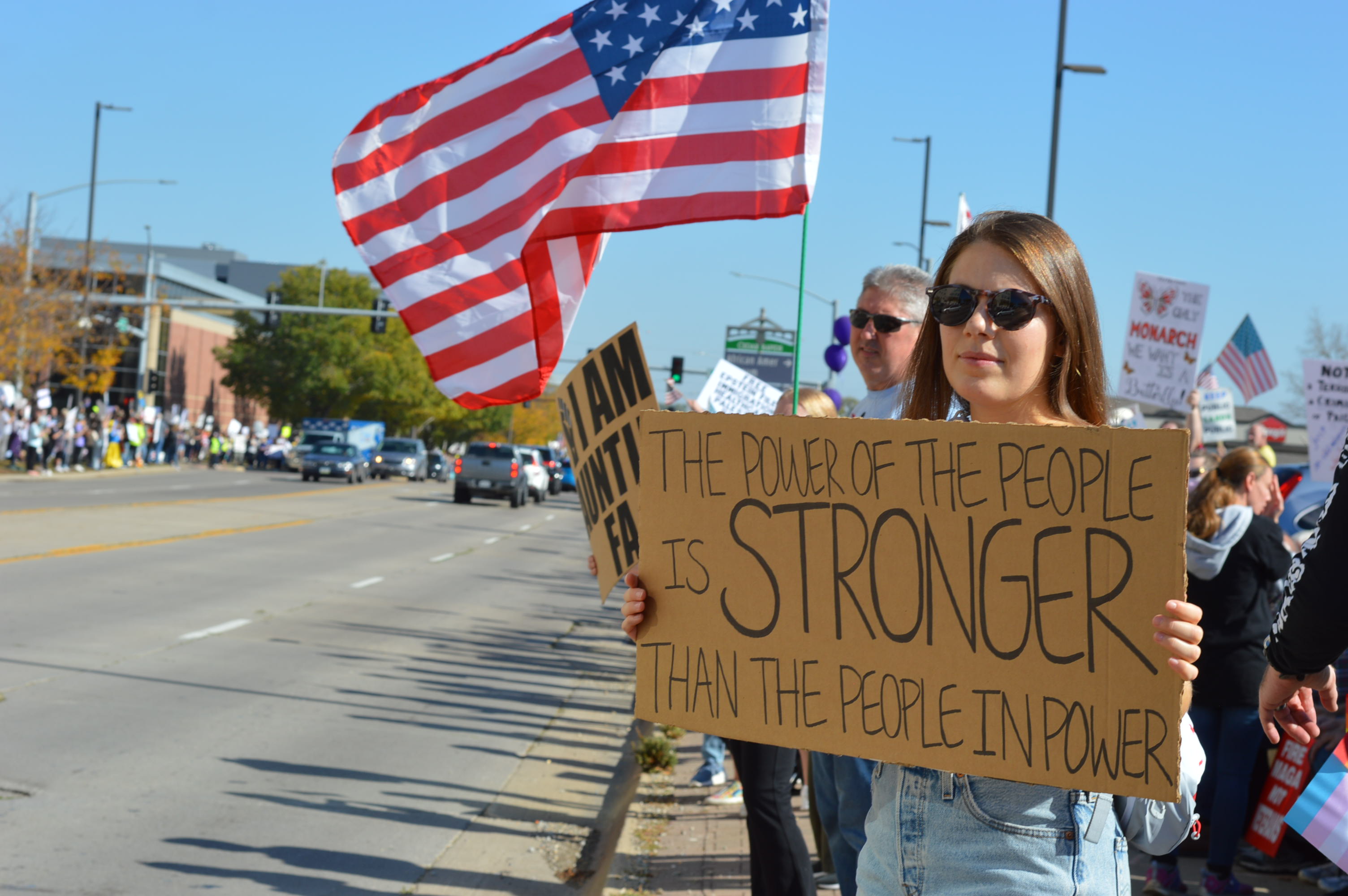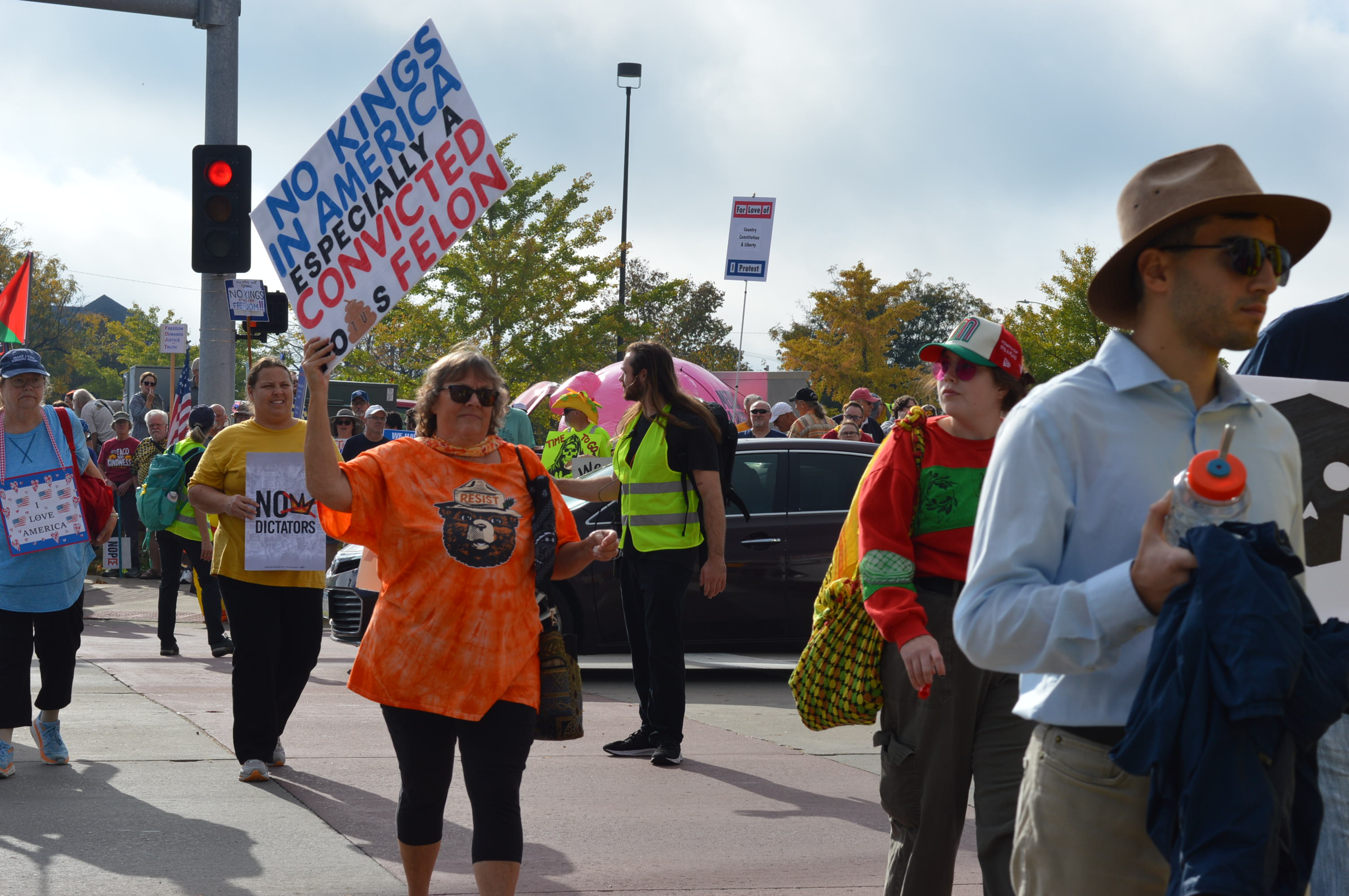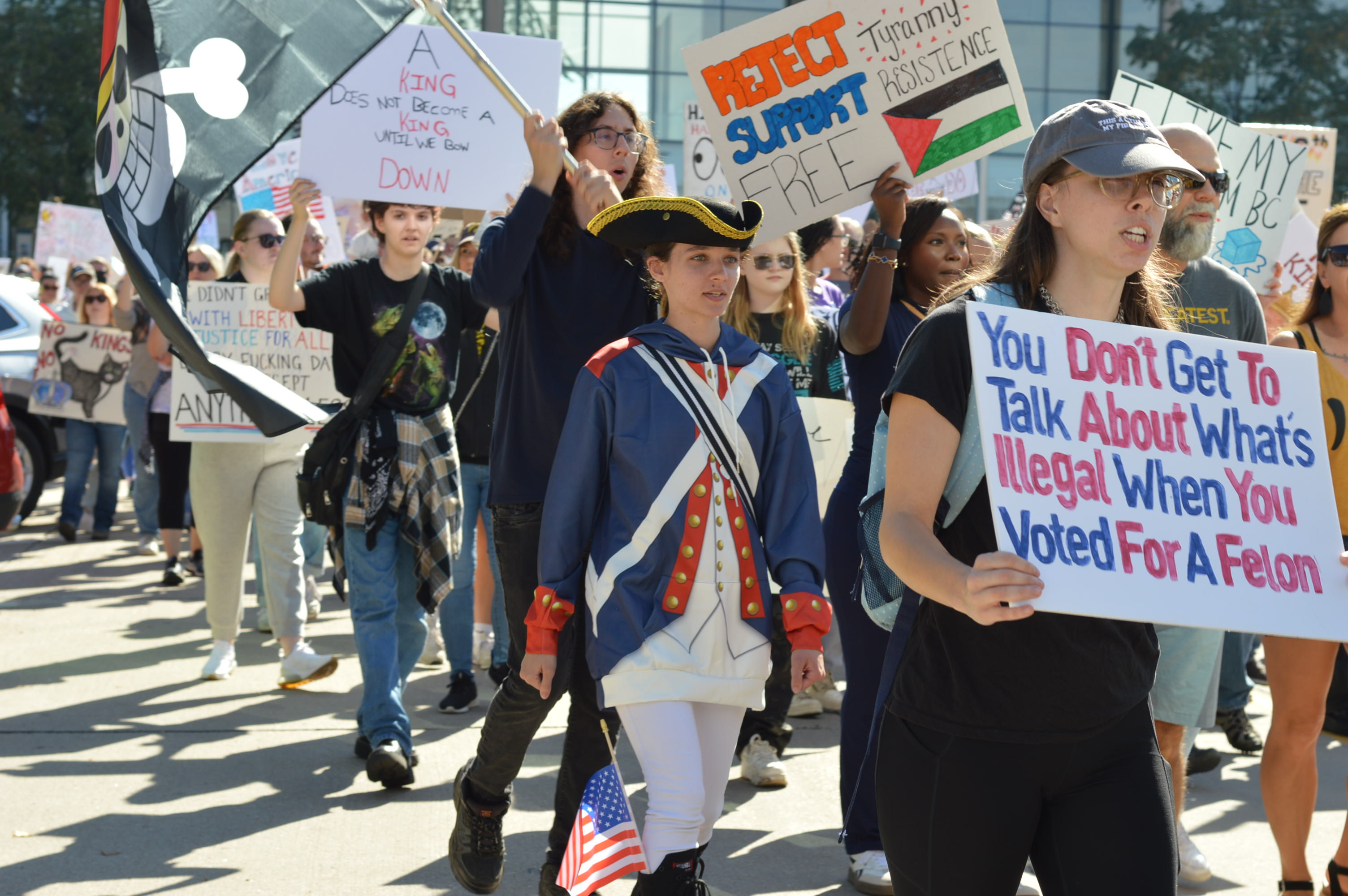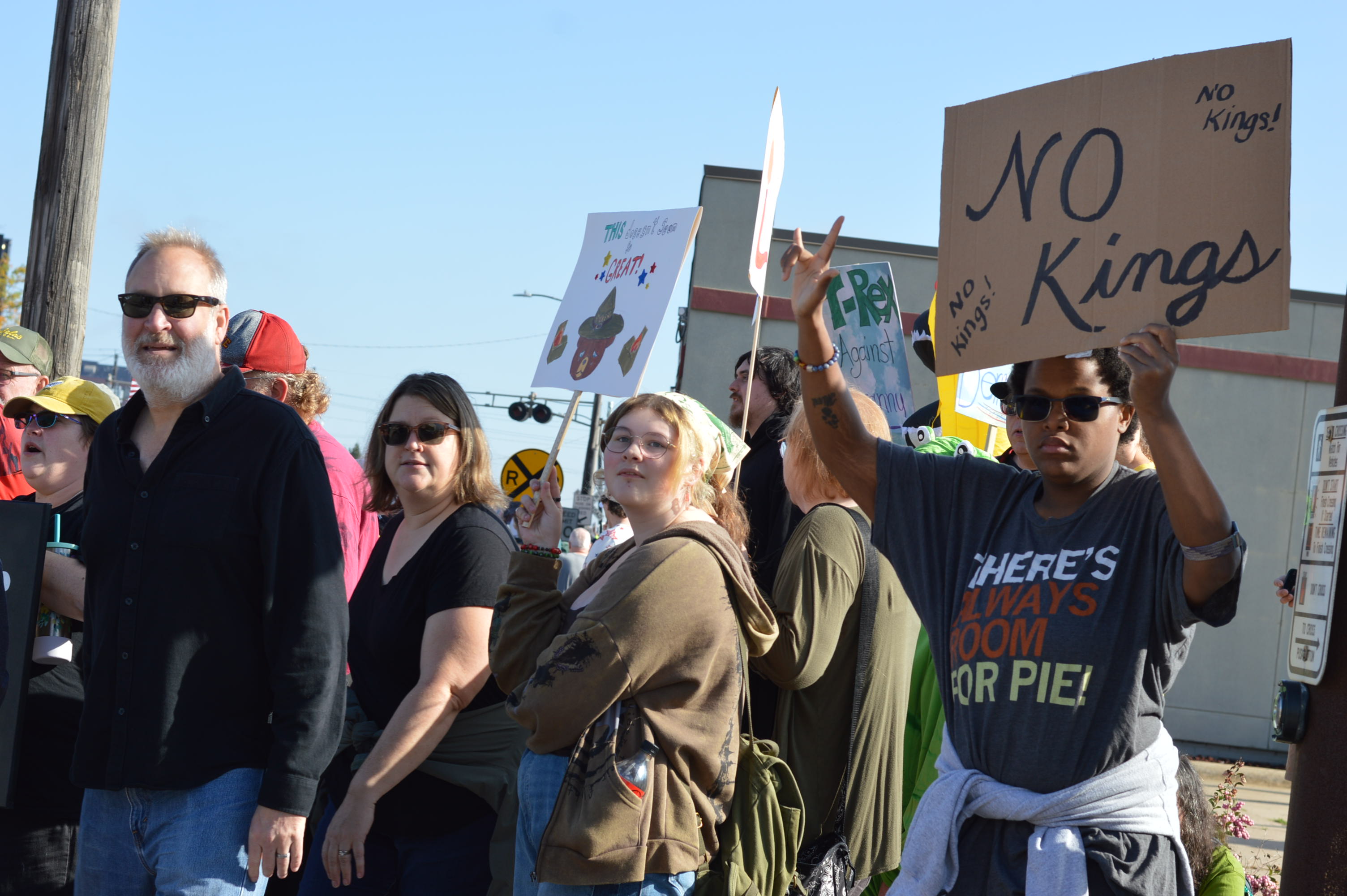 CEDAR RAPIDS, Iowa — Thousands of demonstrators lined Eighth Avenue SE in Cedar Rapids to peacefully protest the Trump administration during a nationwide “No Kings” day on Saturday, Oct. 18, 2025.