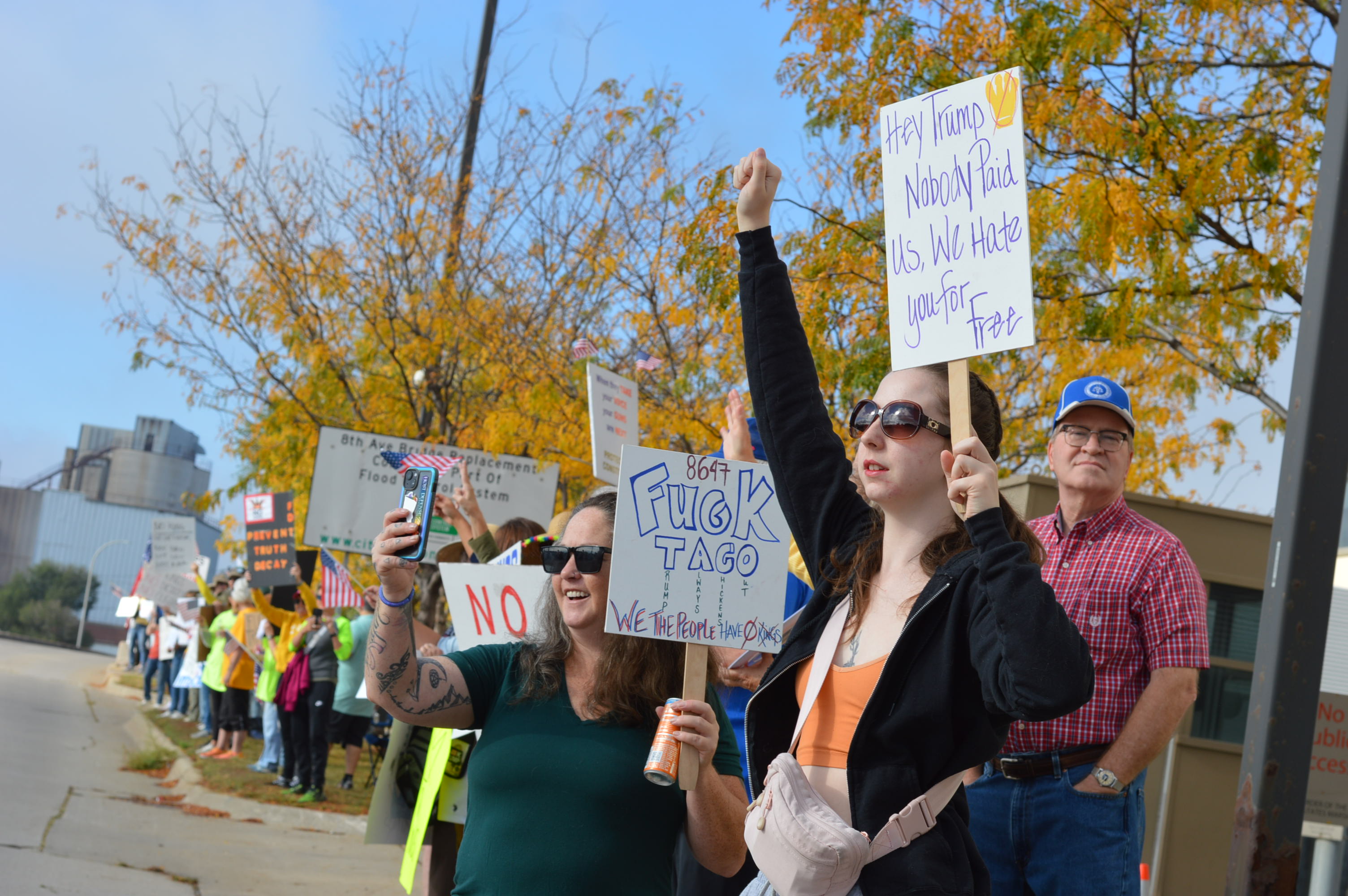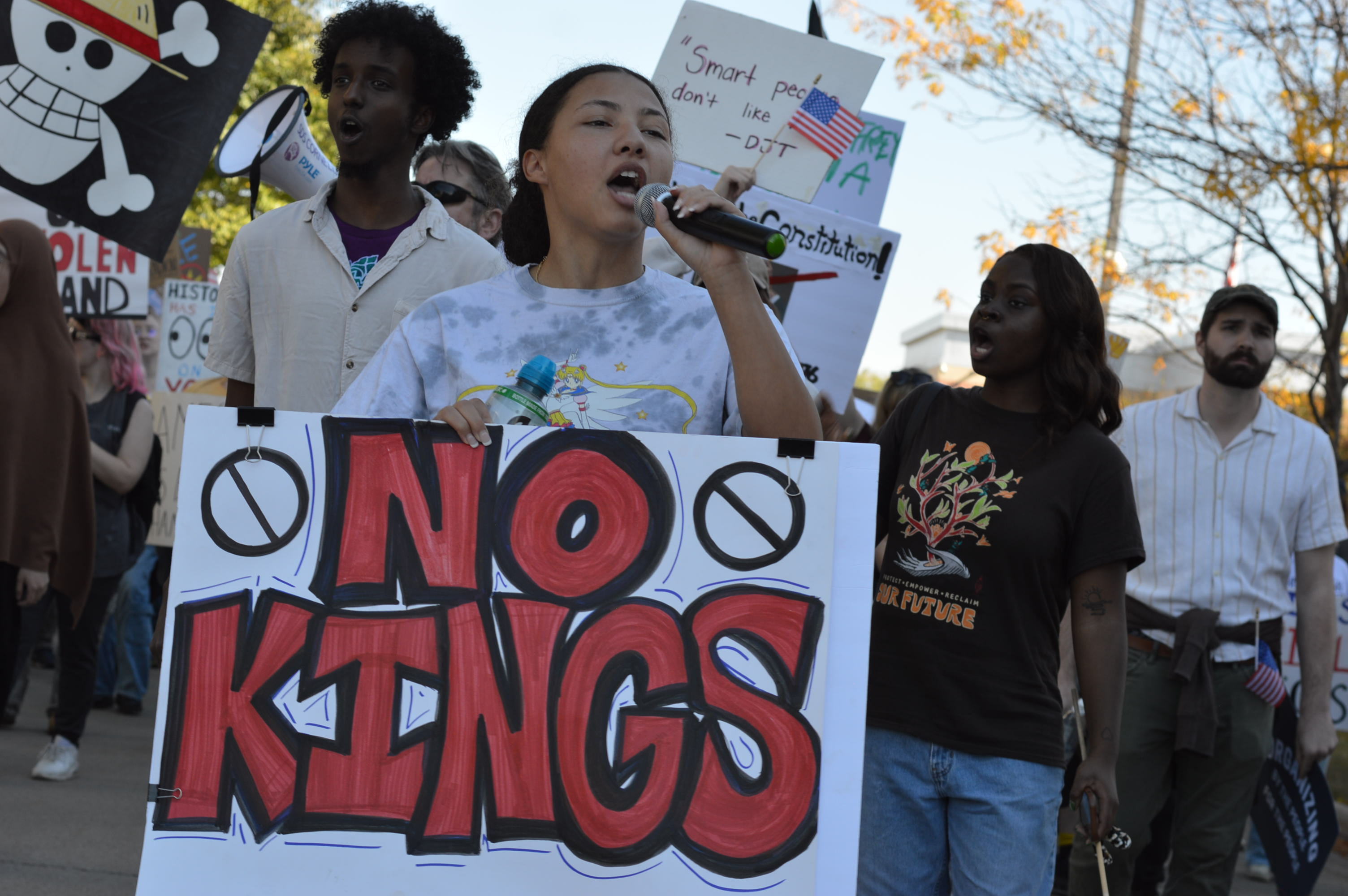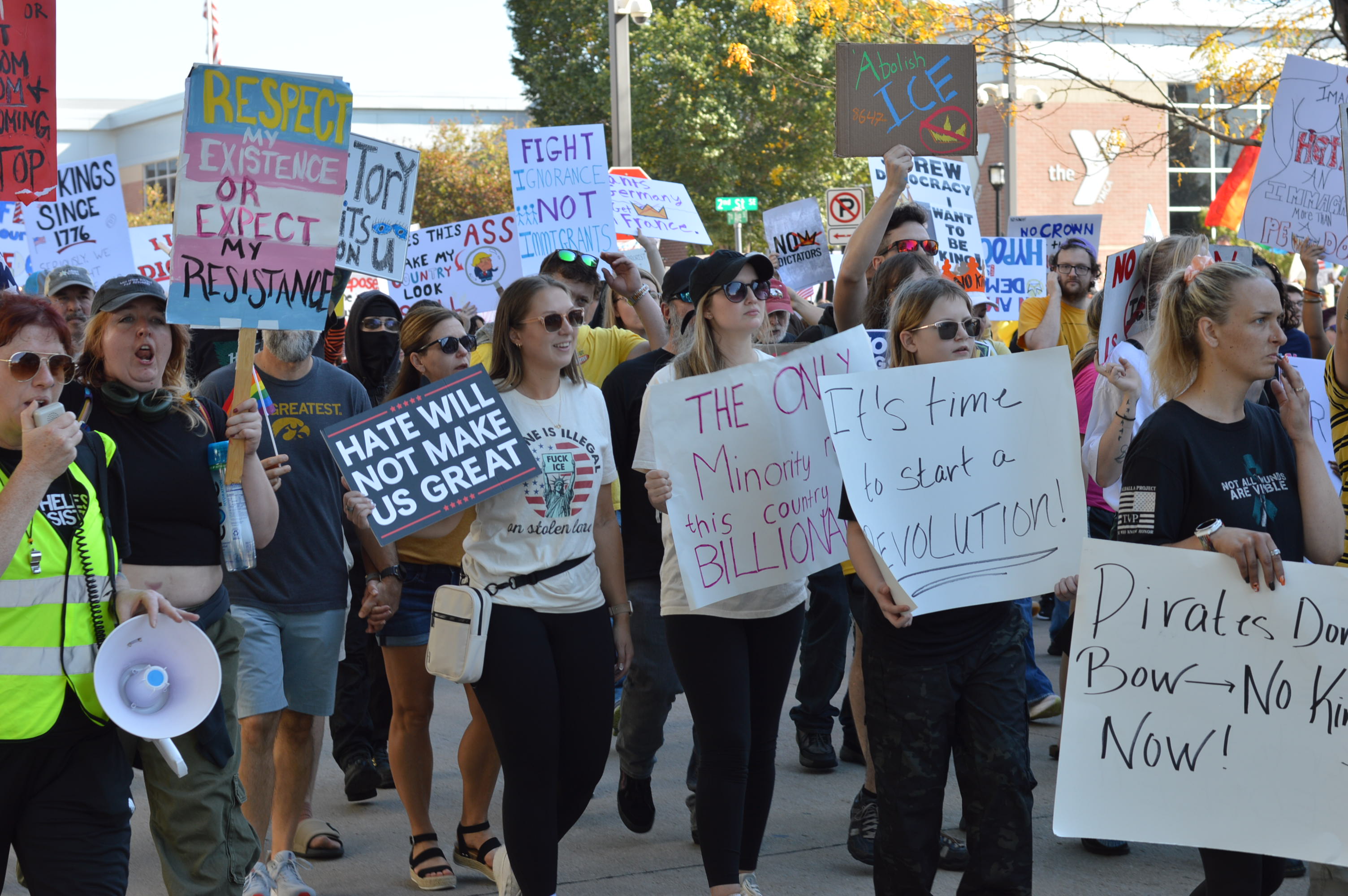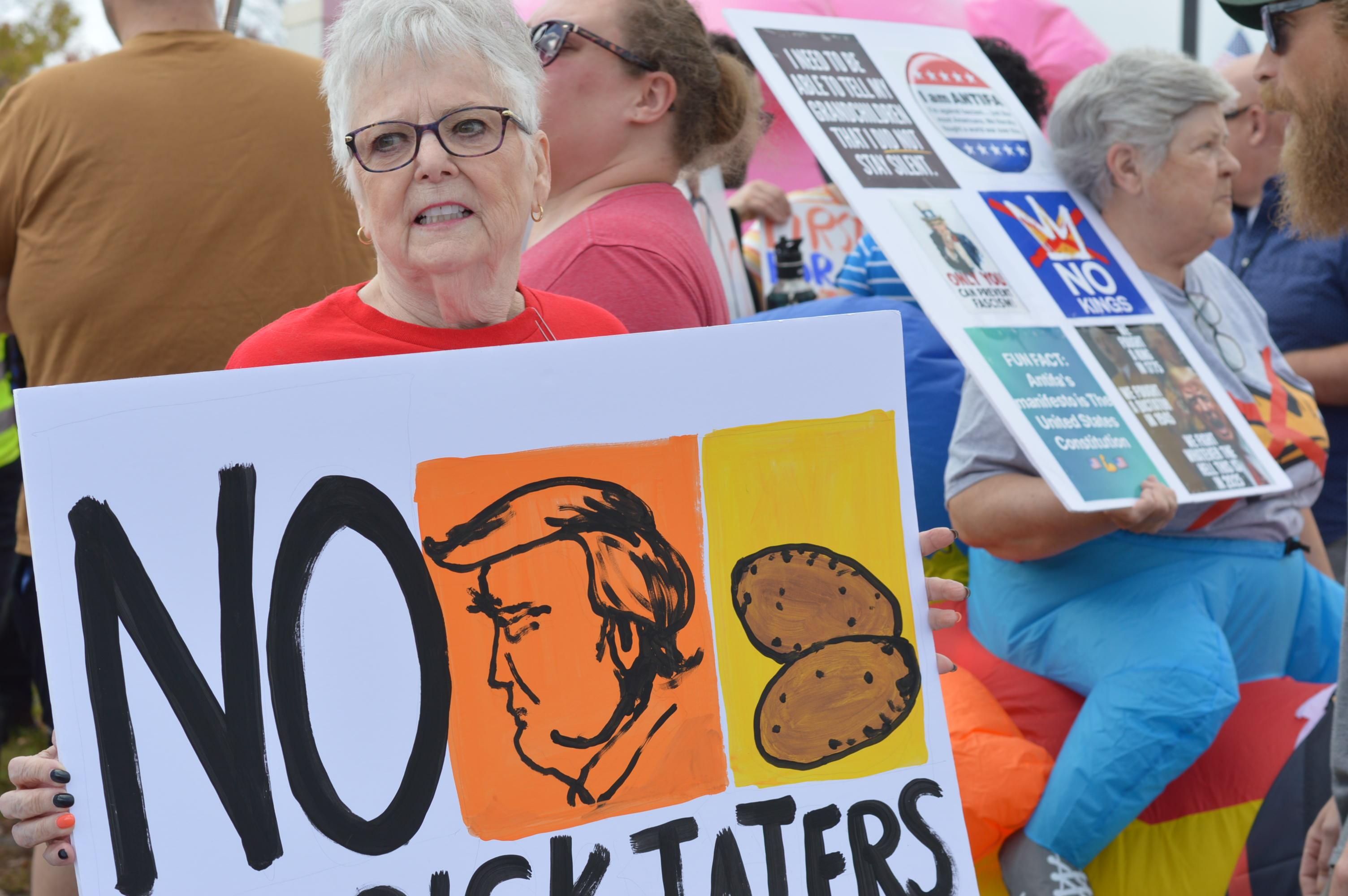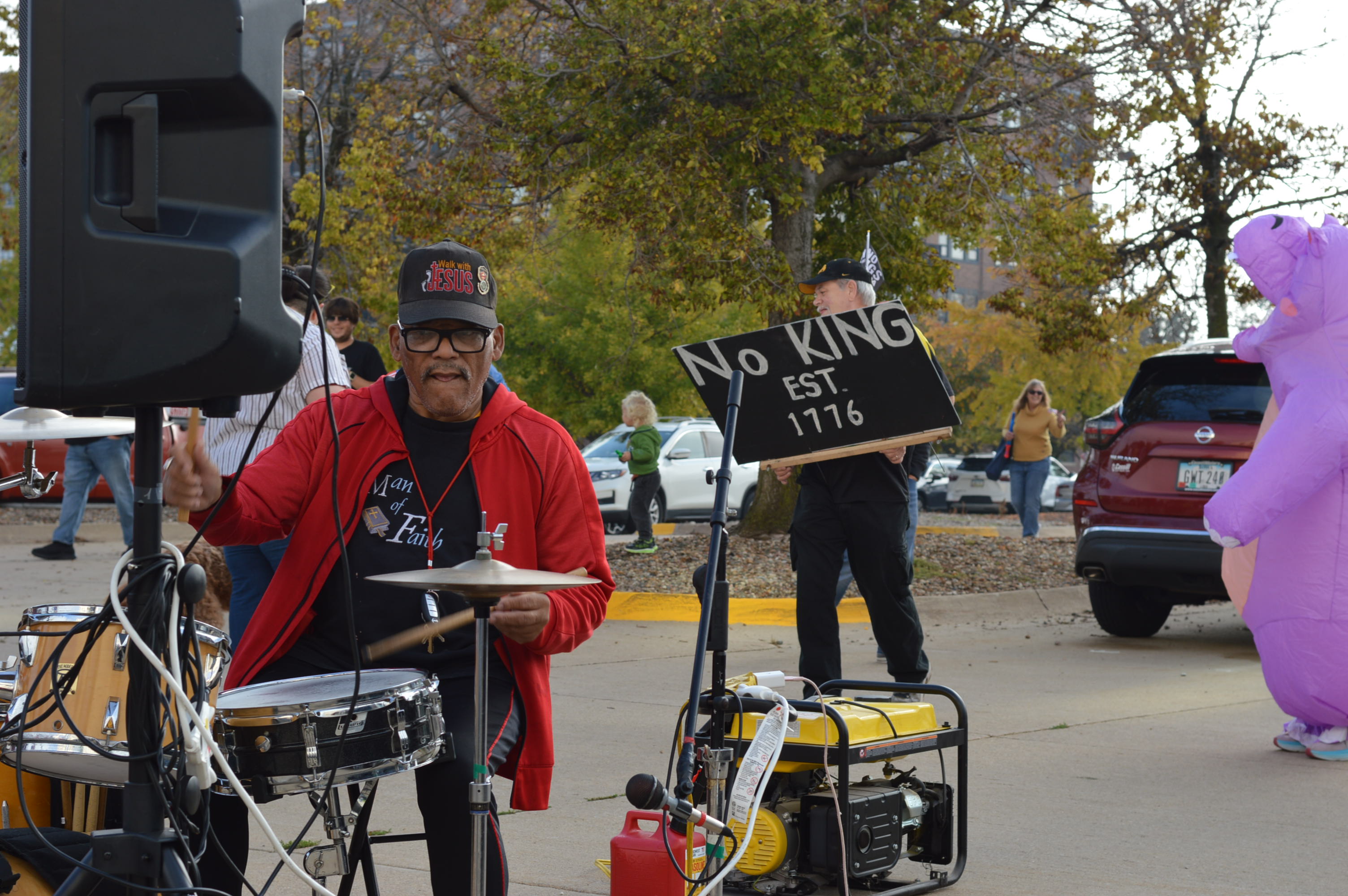 CEDAR RAPIDS, Iowa — Thousands of demonstrators lined Eighth Avenue SE in Cedar Rapids to peacefully protest the Trump administration during a nationwide “No Kings” day on Saturday, Oct. 18, 2025.