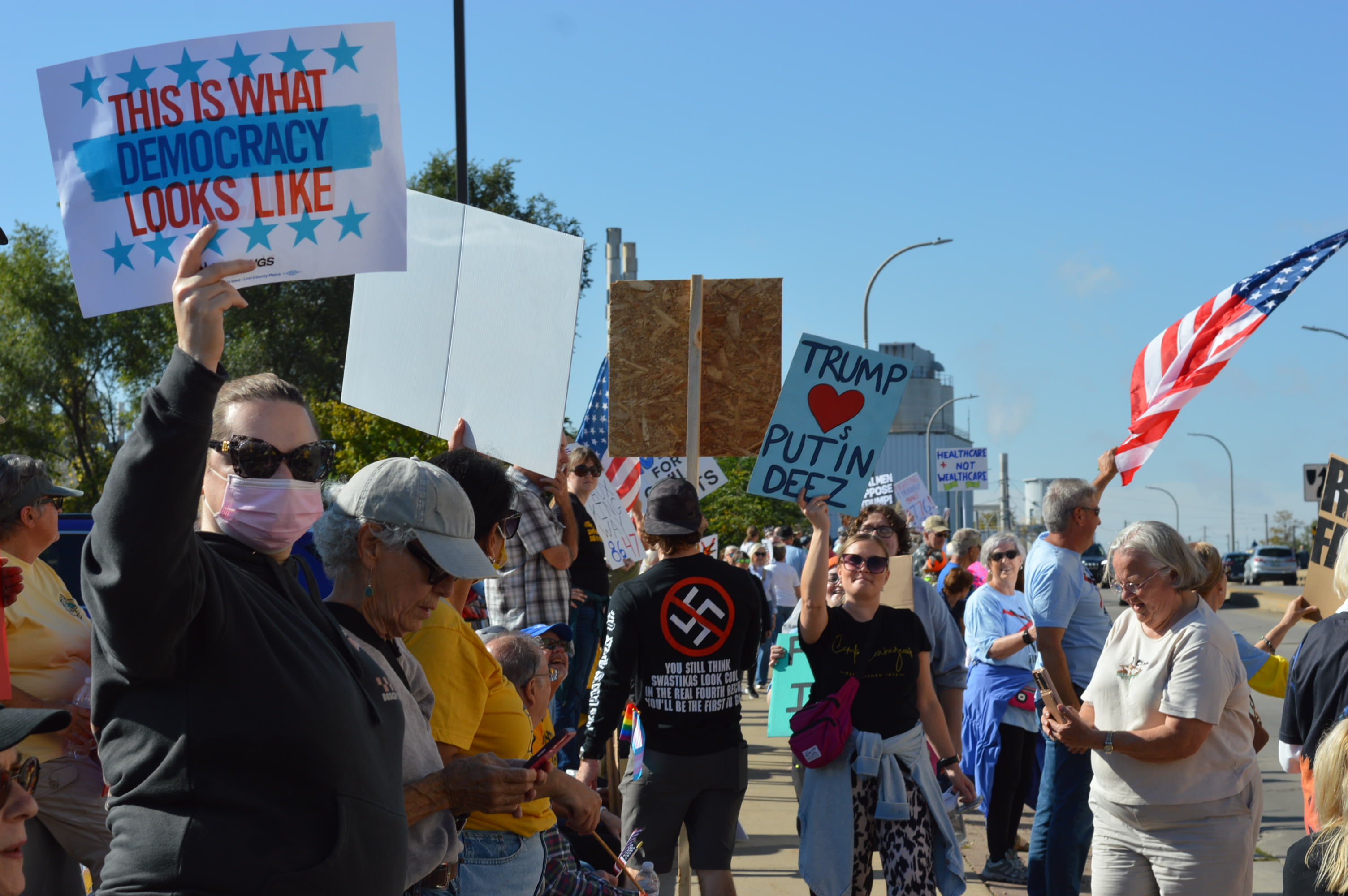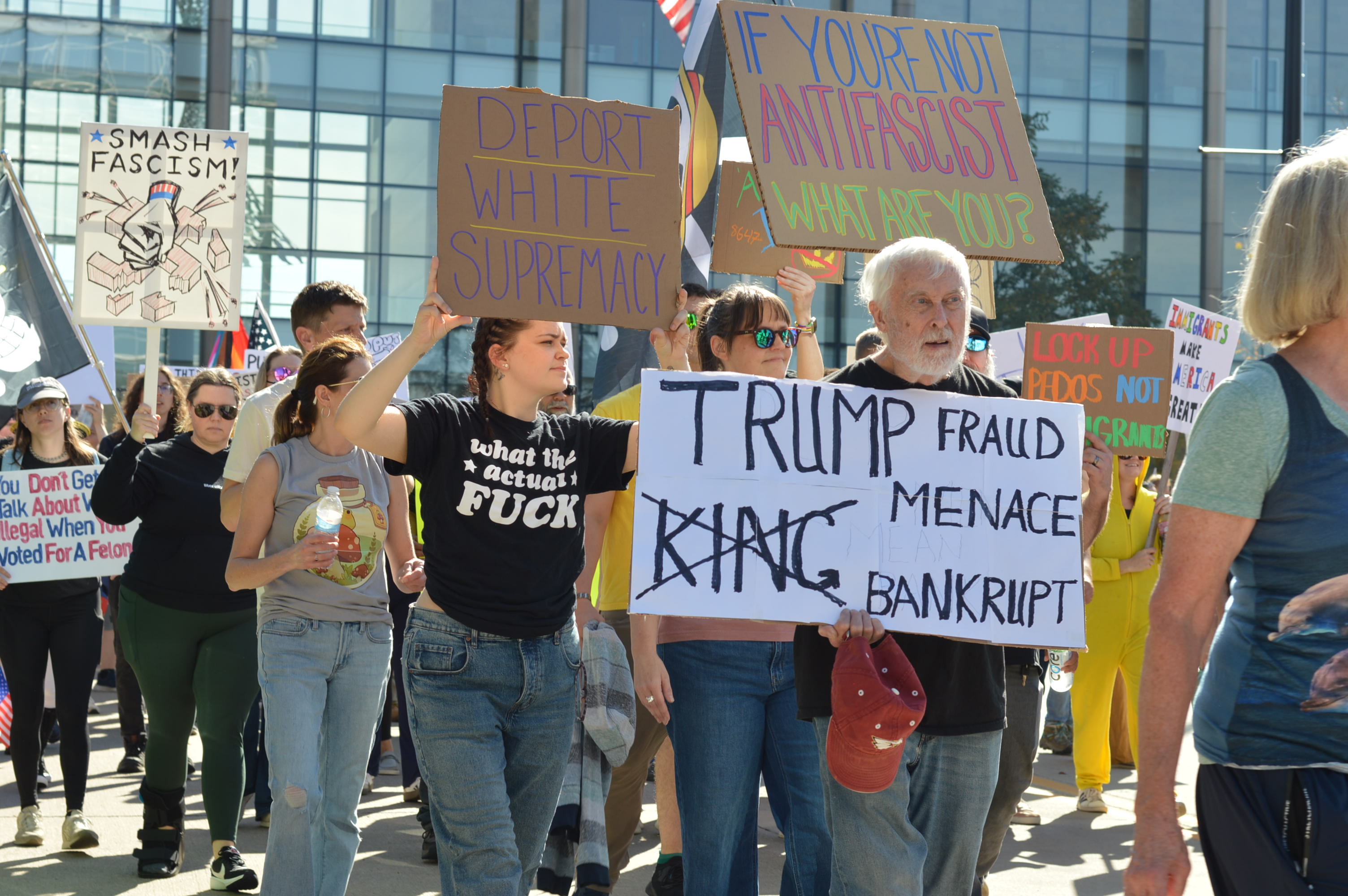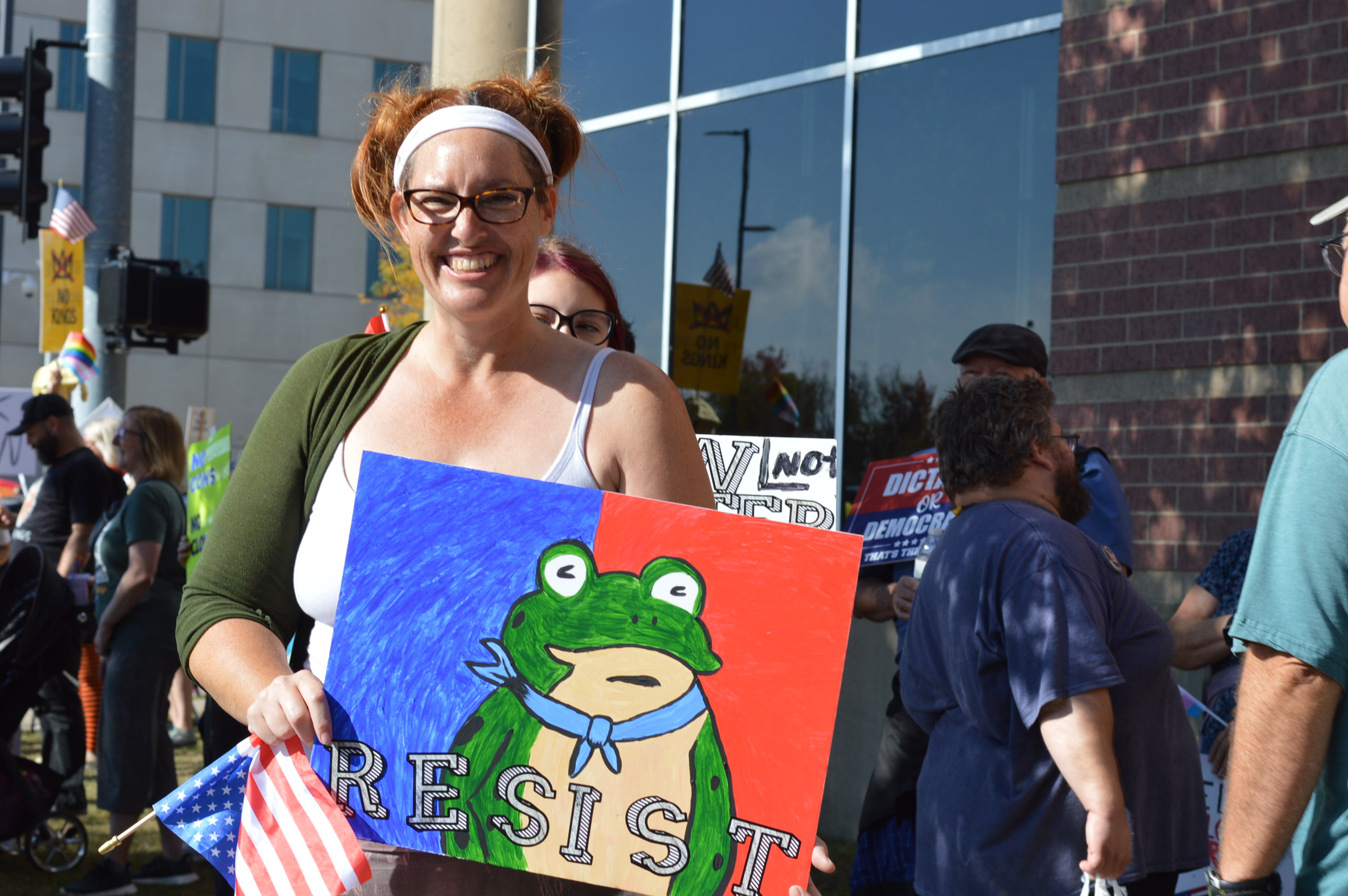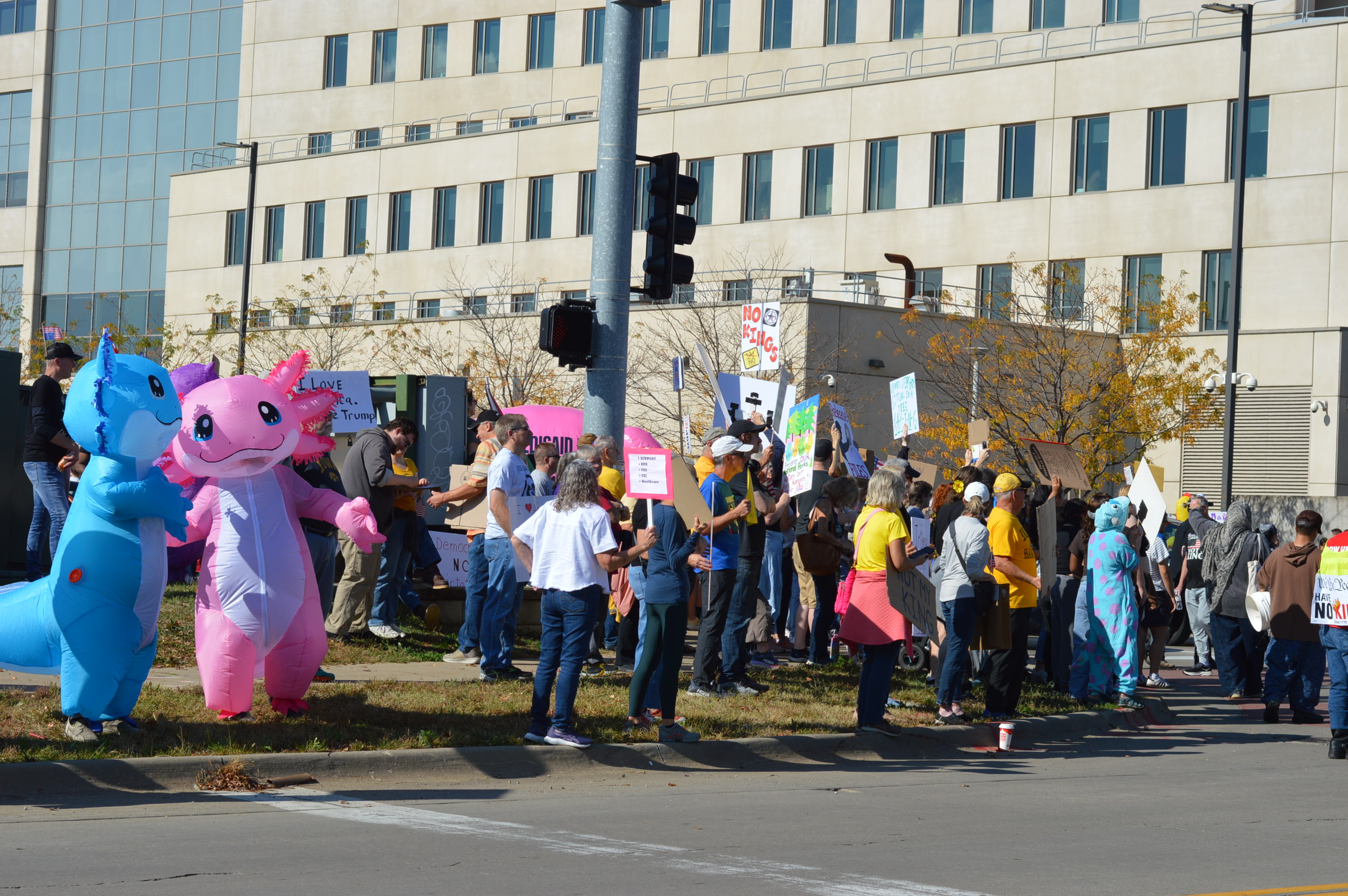 CEDAR RAPIDS, Iowa — Thousands of demonstrators lined Eighth Avenue SE in Cedar Rapids to peacefully protest the Trump administration during a nationwide “No Kings” day on Saturday, Oct. 18, 2025.