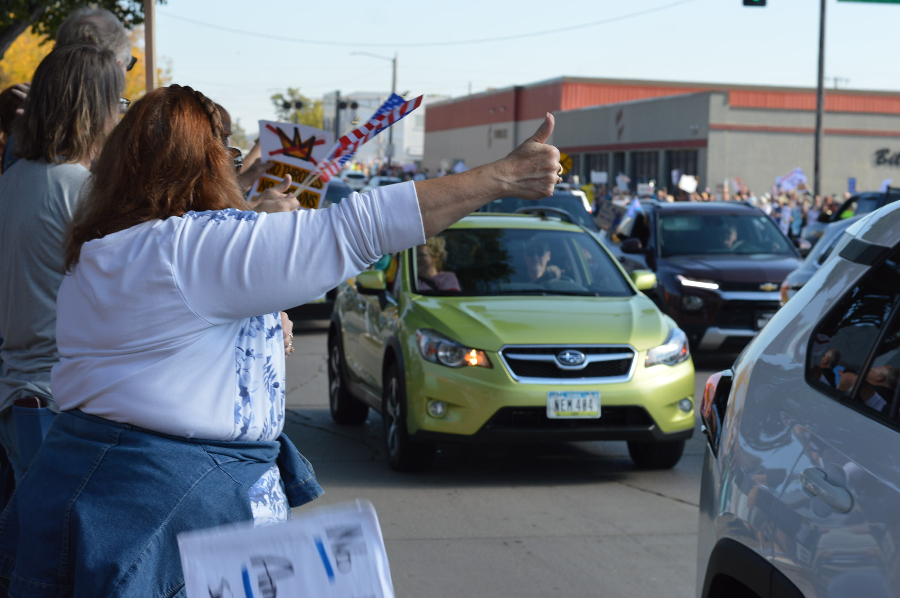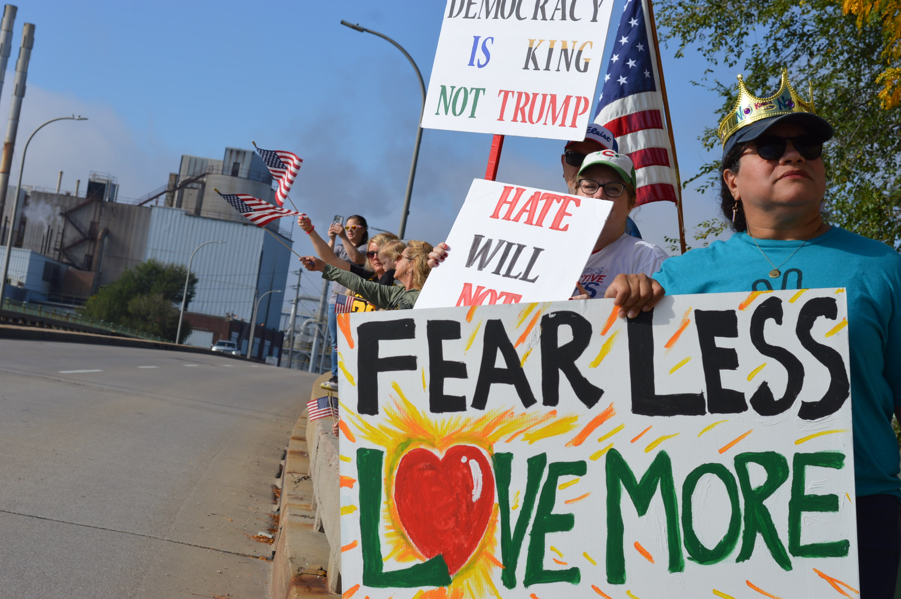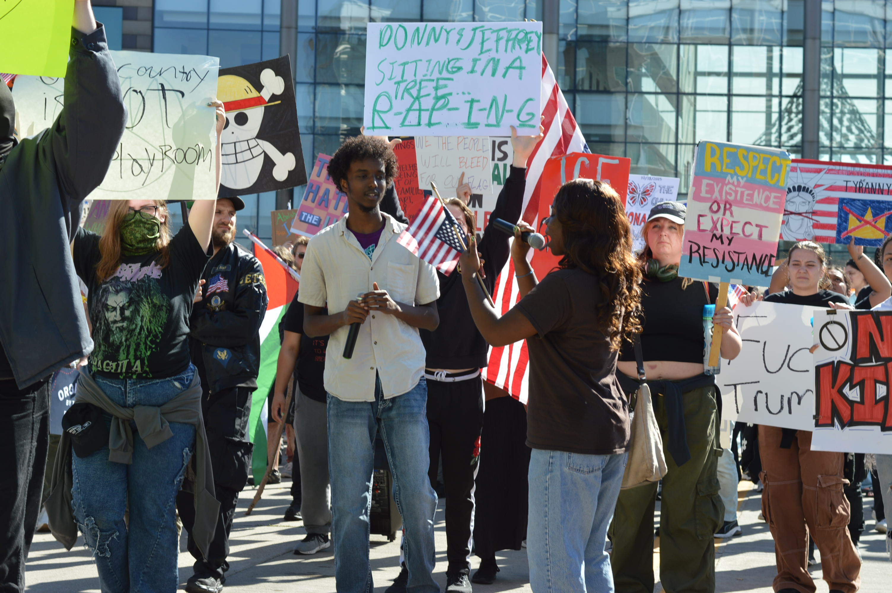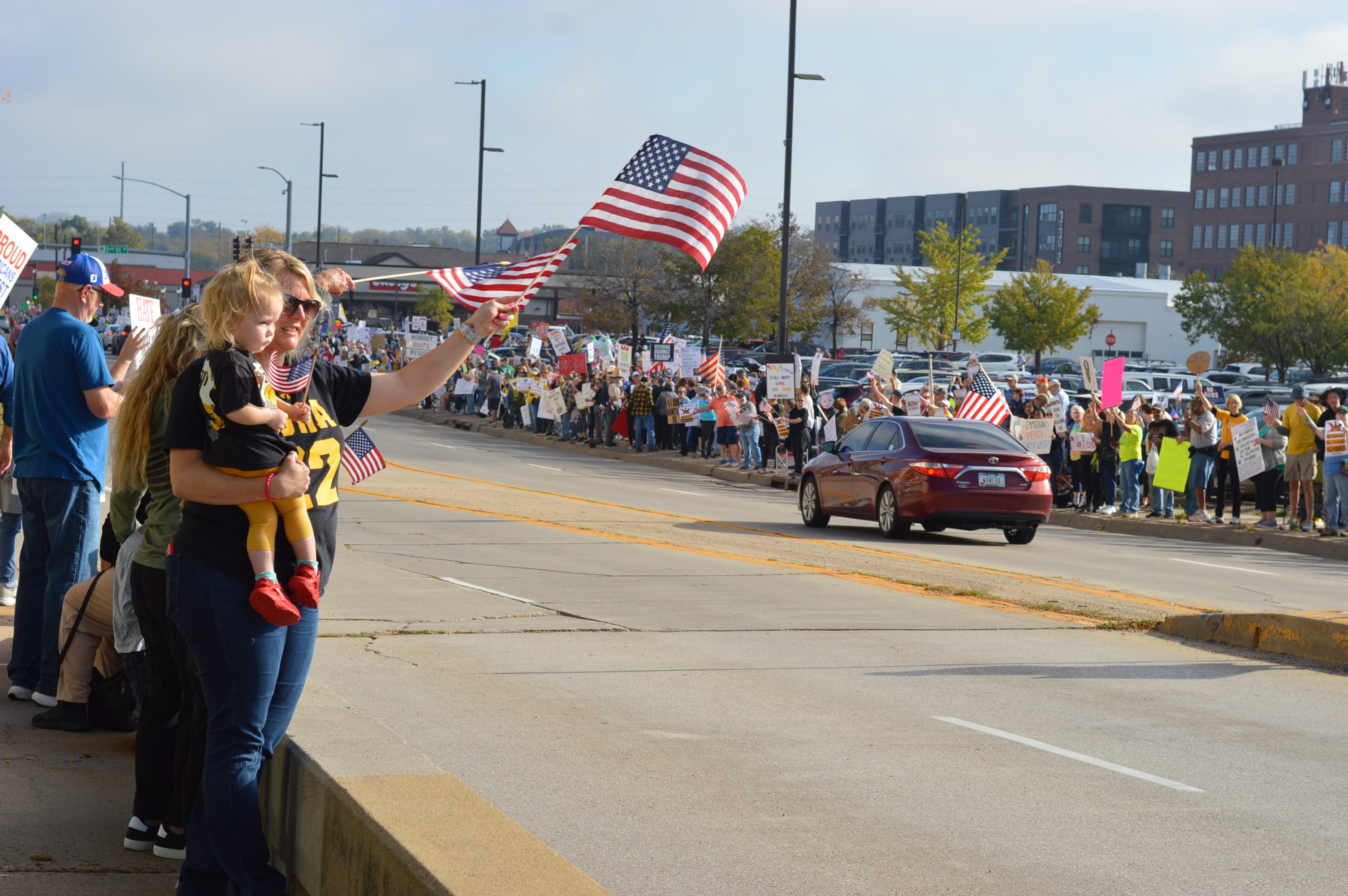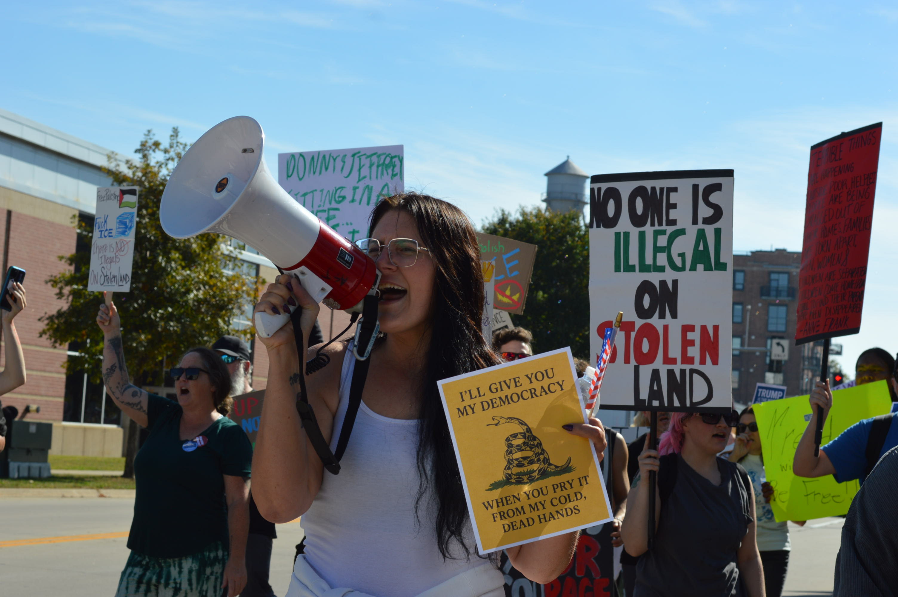 CEDAR RAPIDS, Iowa — Thousands of demonstrators lined Eighth Avenue SE in Cedar Rapids to peacefully protest the Trump administration during a nationwide “No Kings” day on Saturday, Oct. 18, 2025.