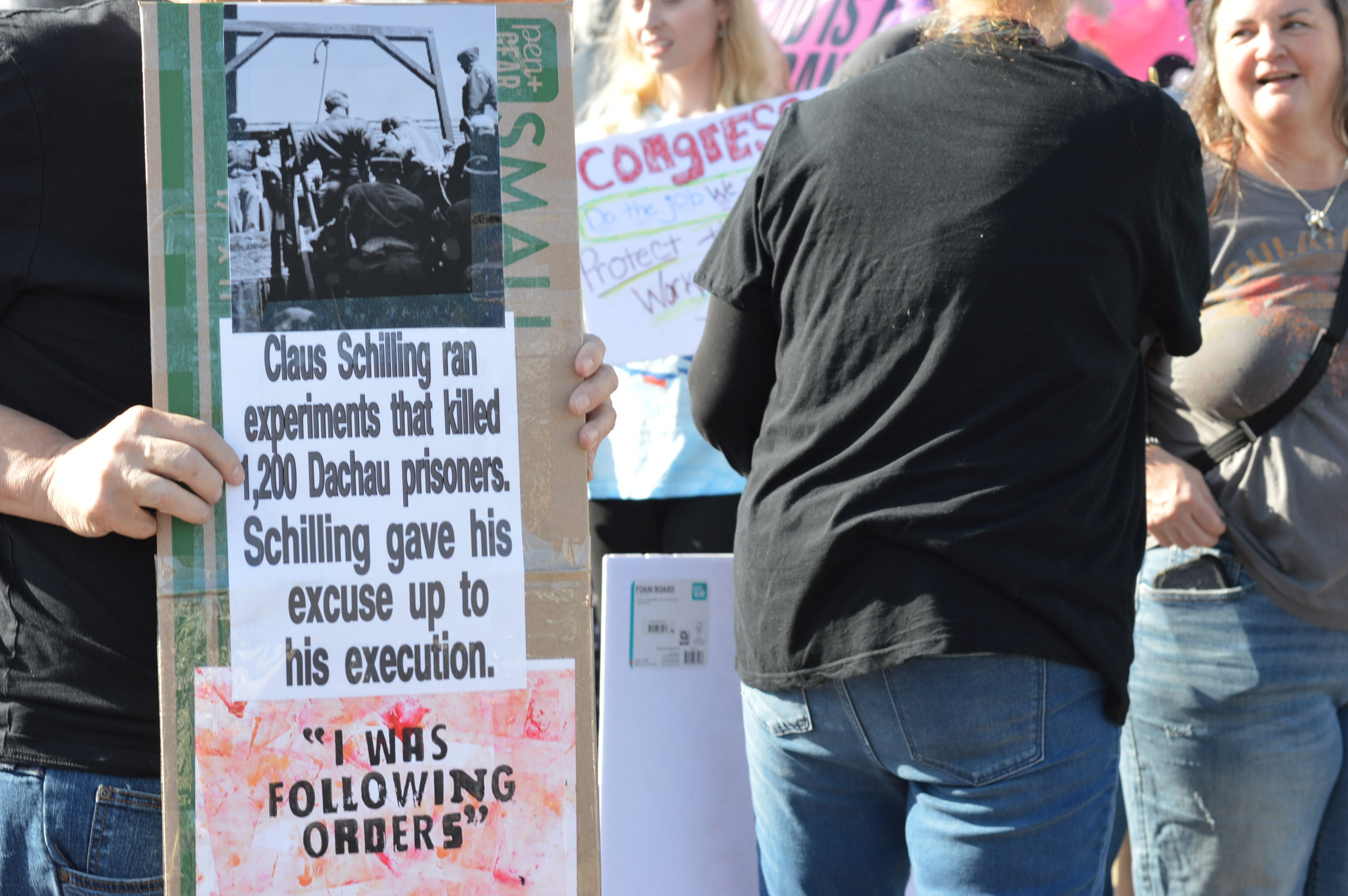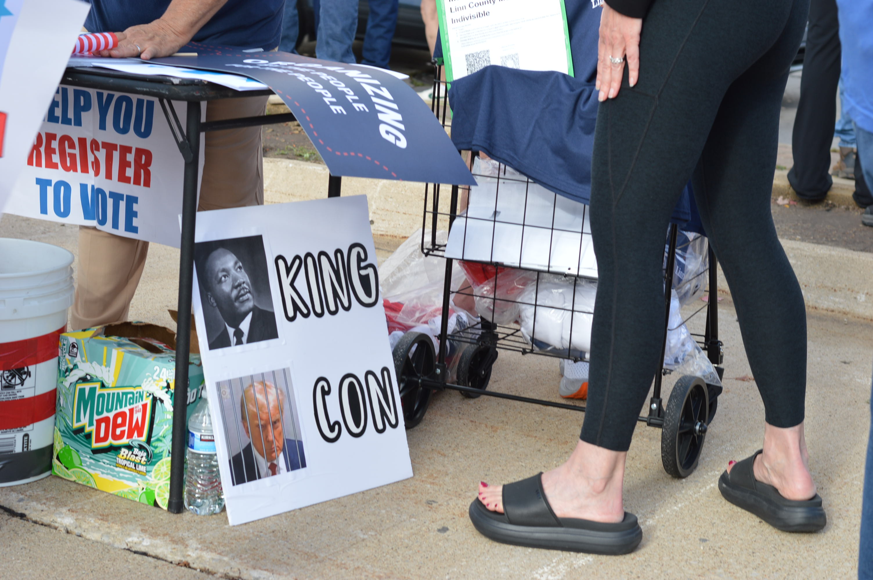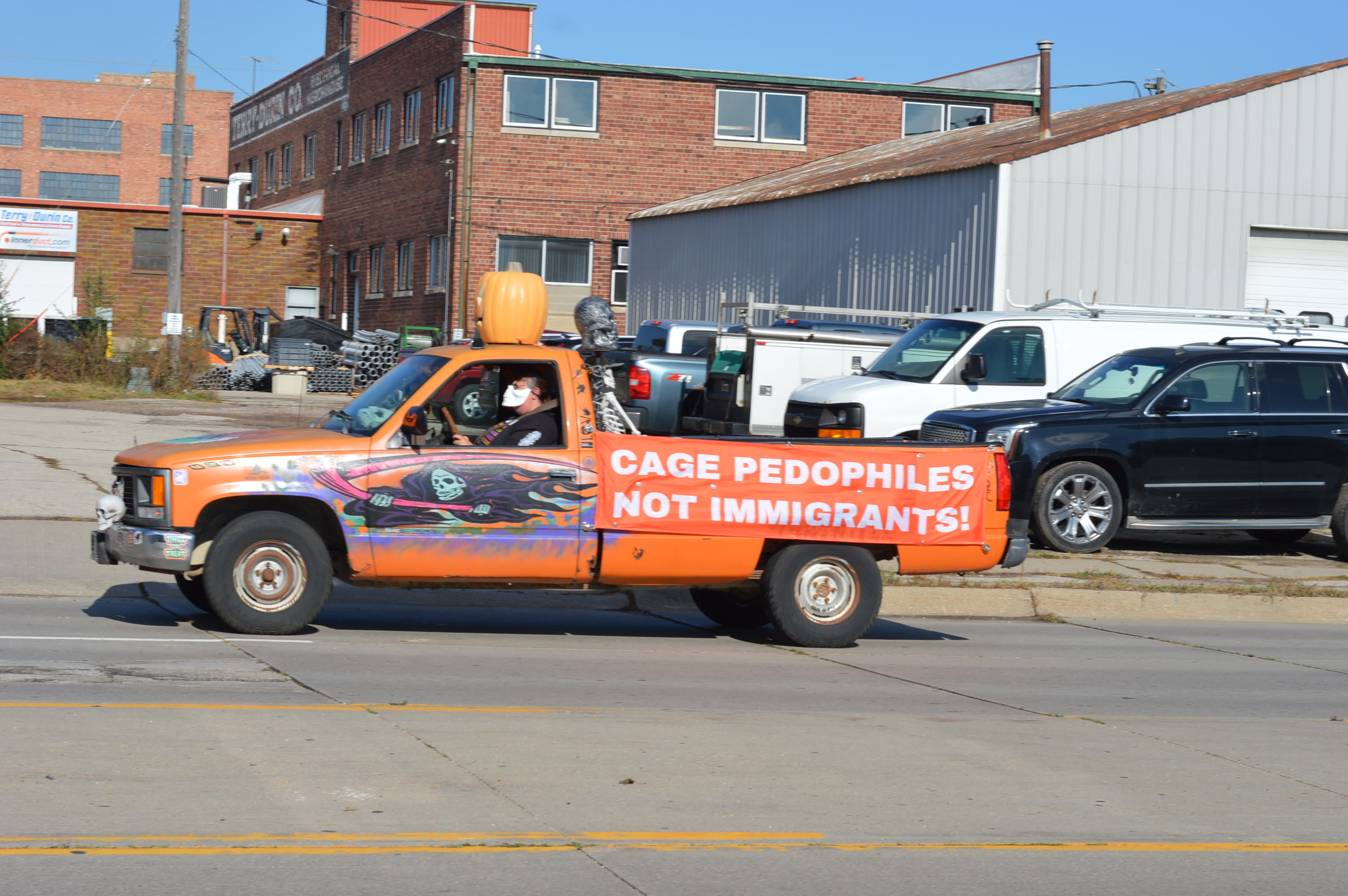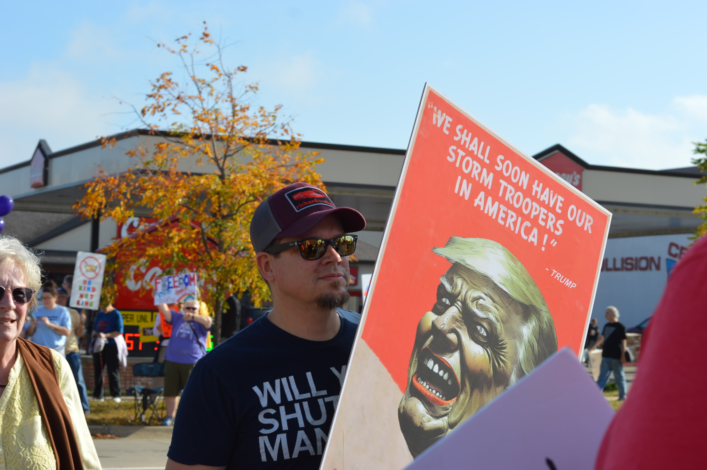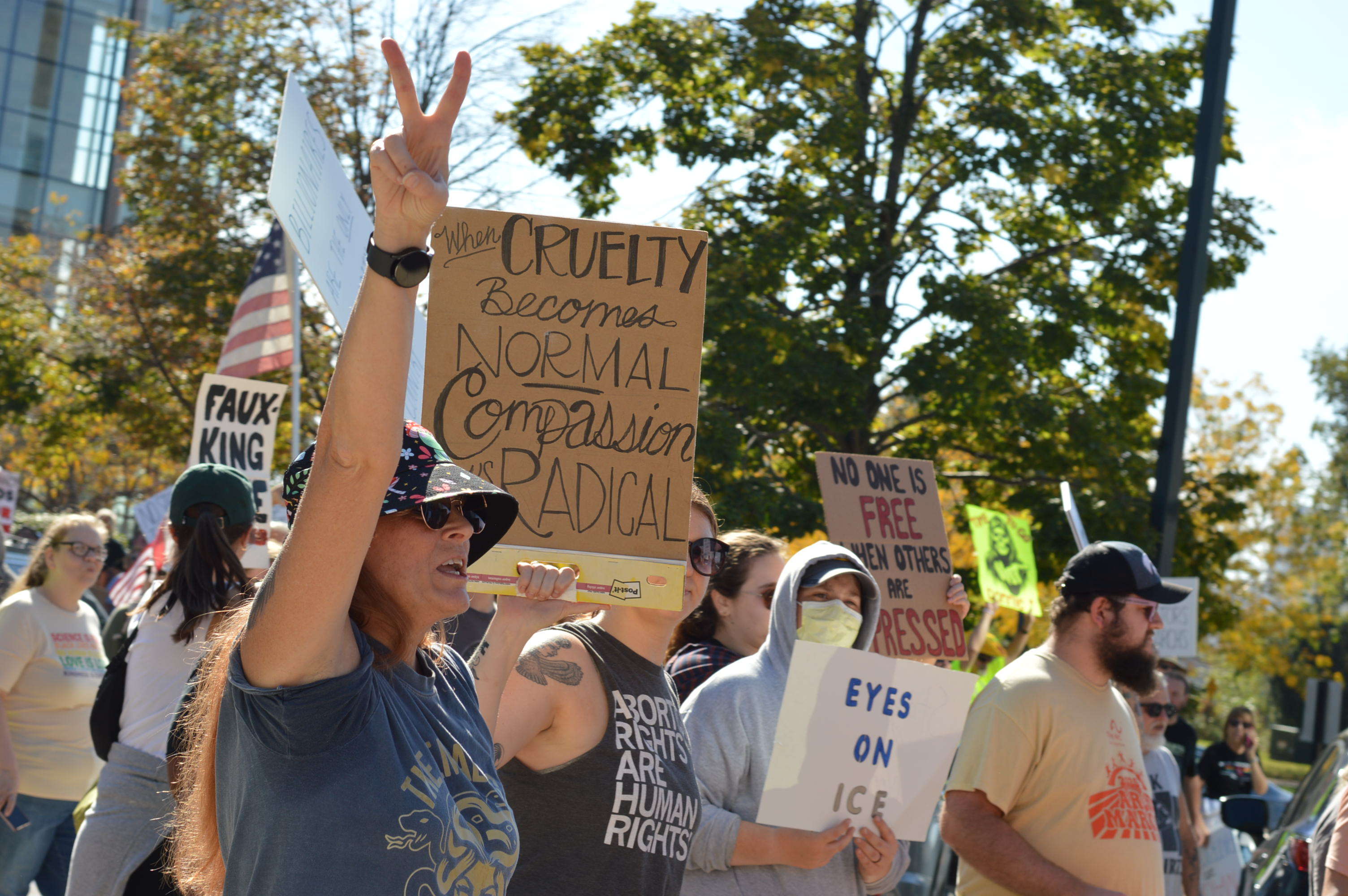 Standing several people deep at some intersections, the crowd stretched from halfway across the Eighth Avenue Bridge, past the railroad tracks to Fifth Street SE; an even longer line than the previous “No Kings” protest in June.