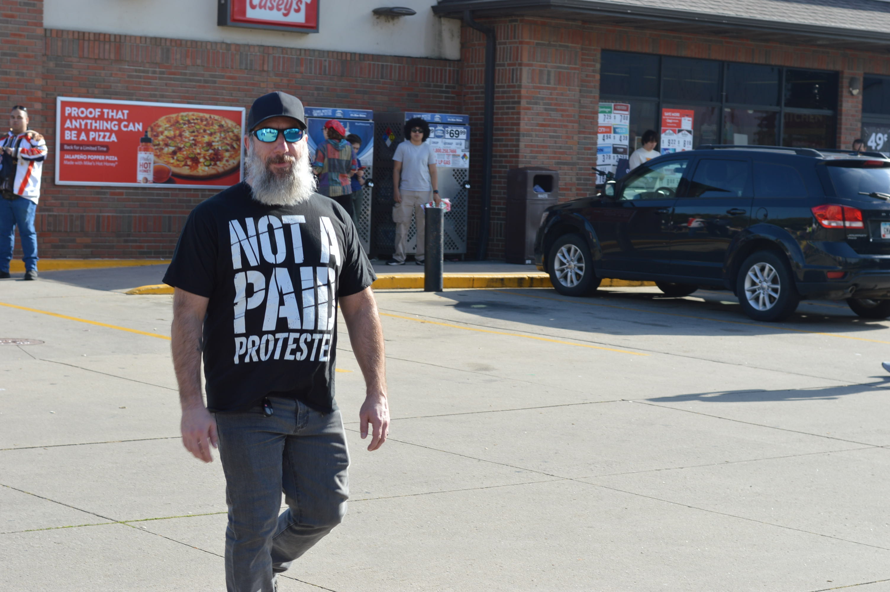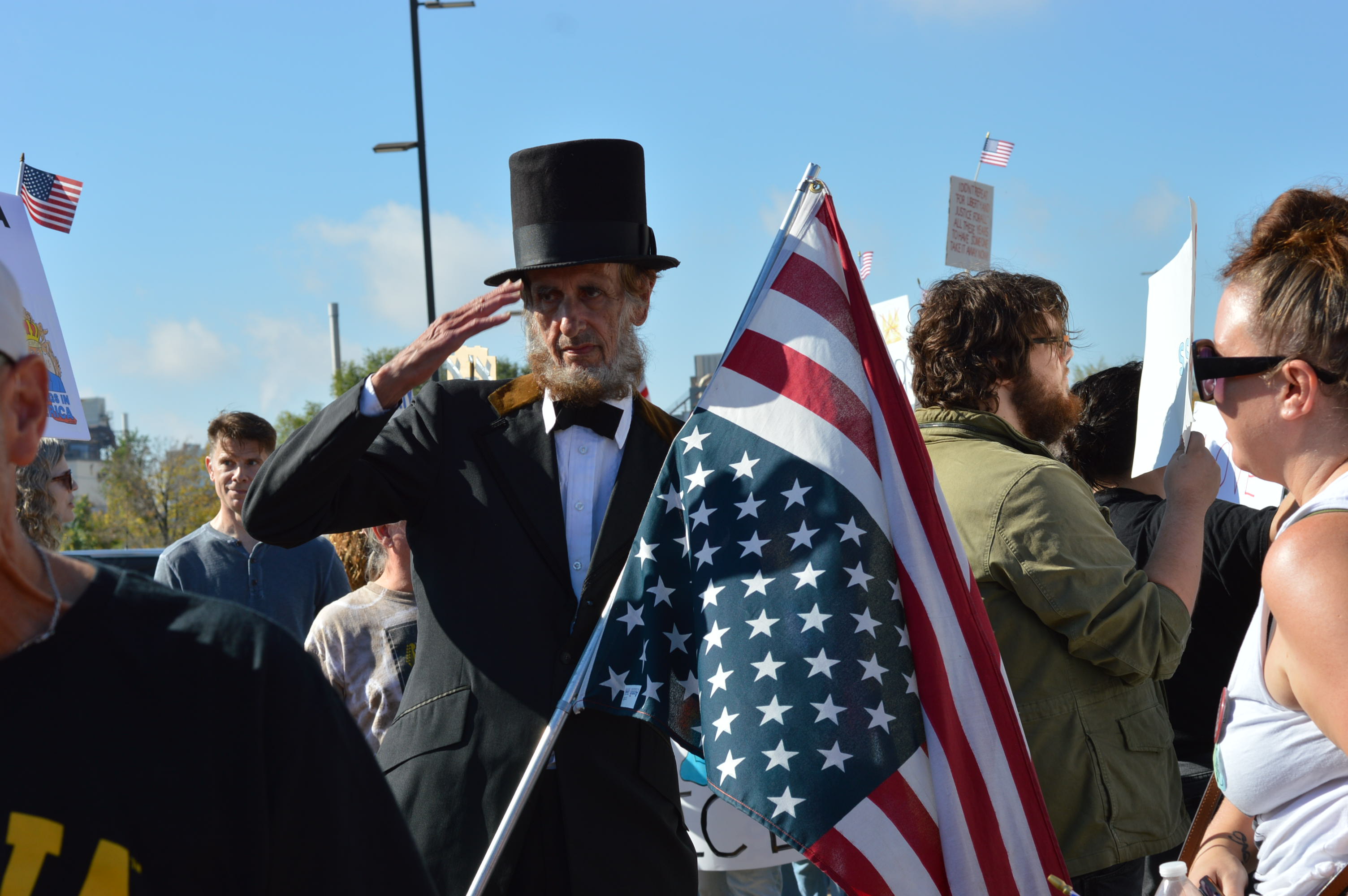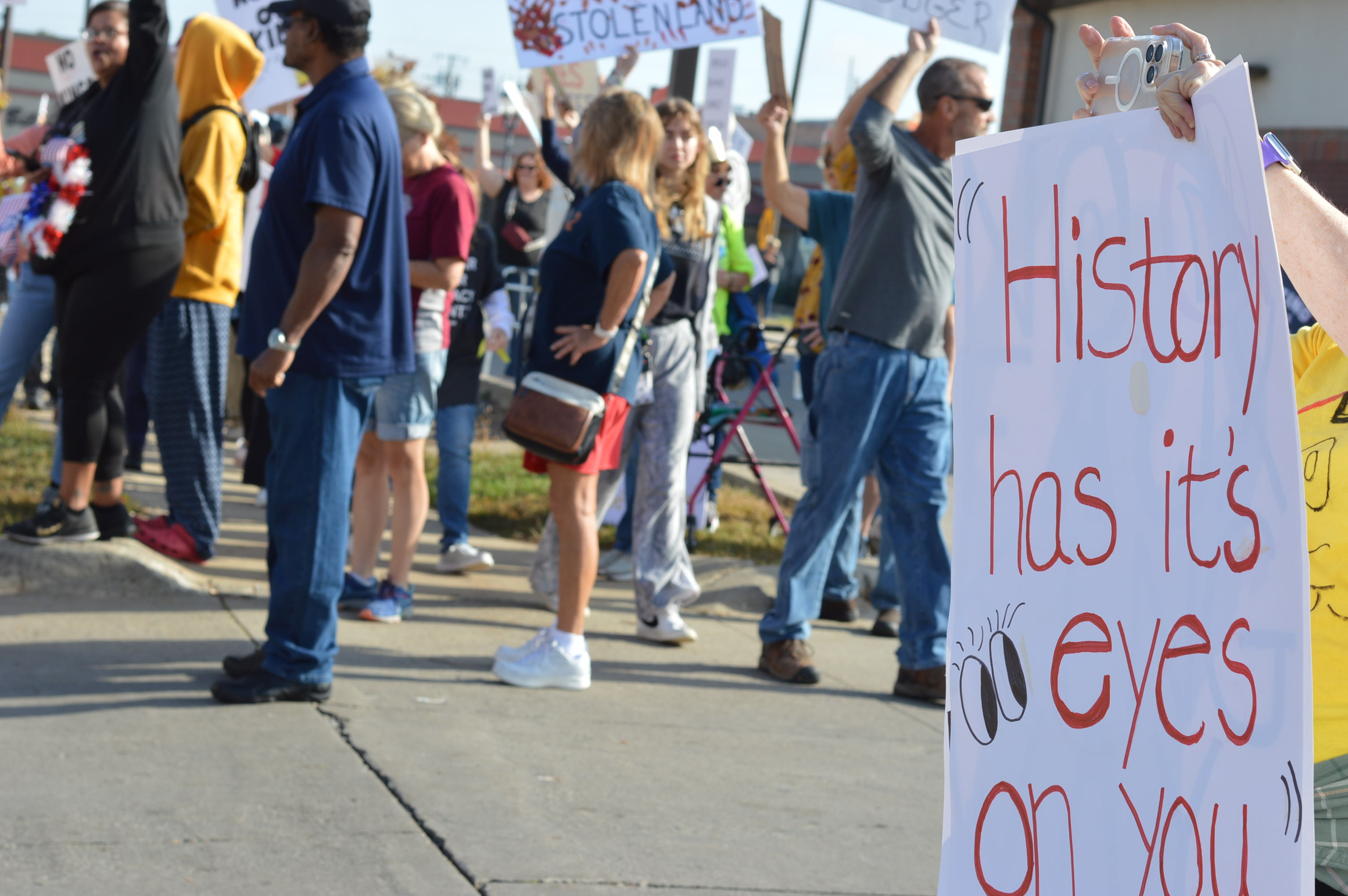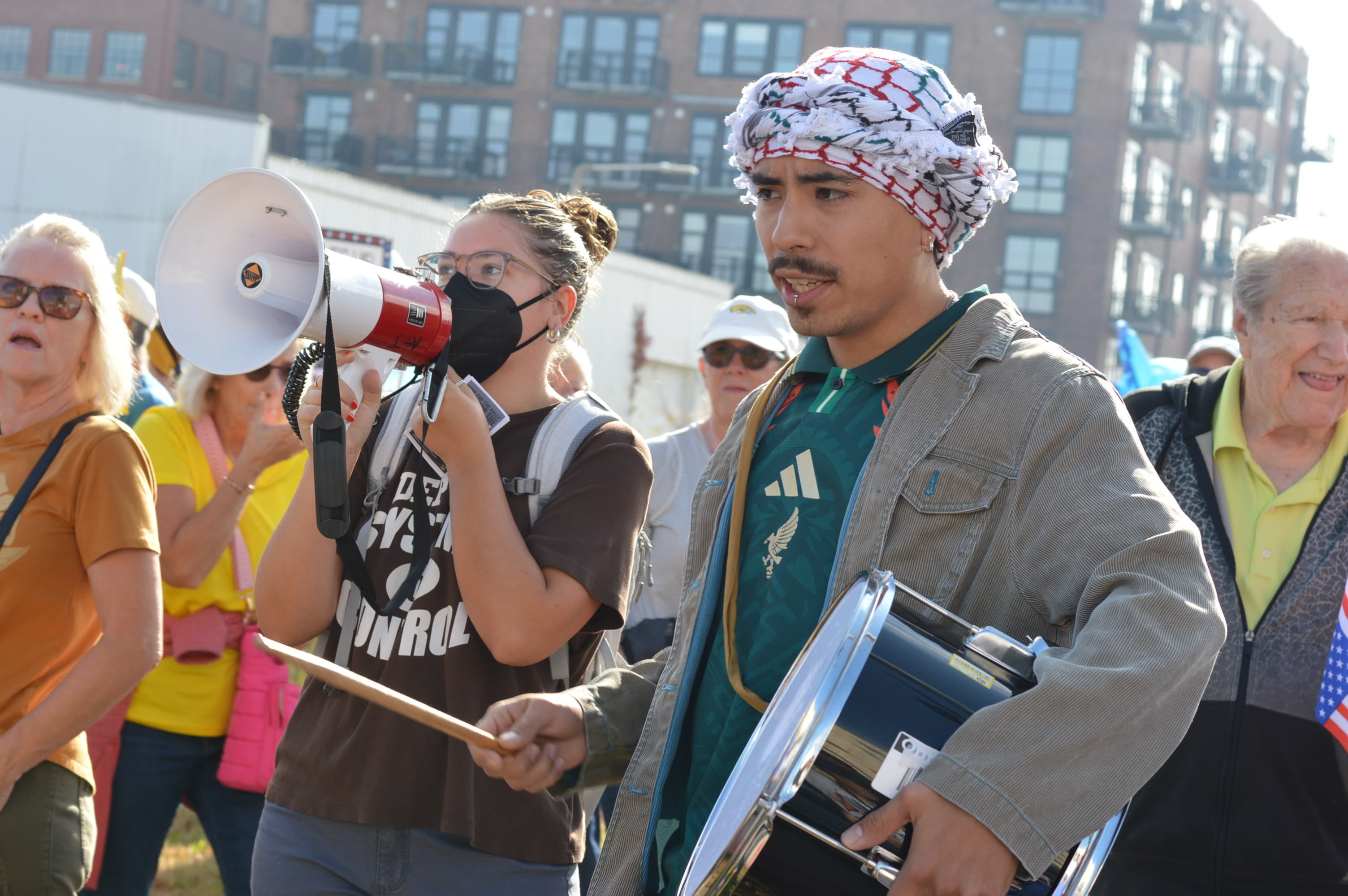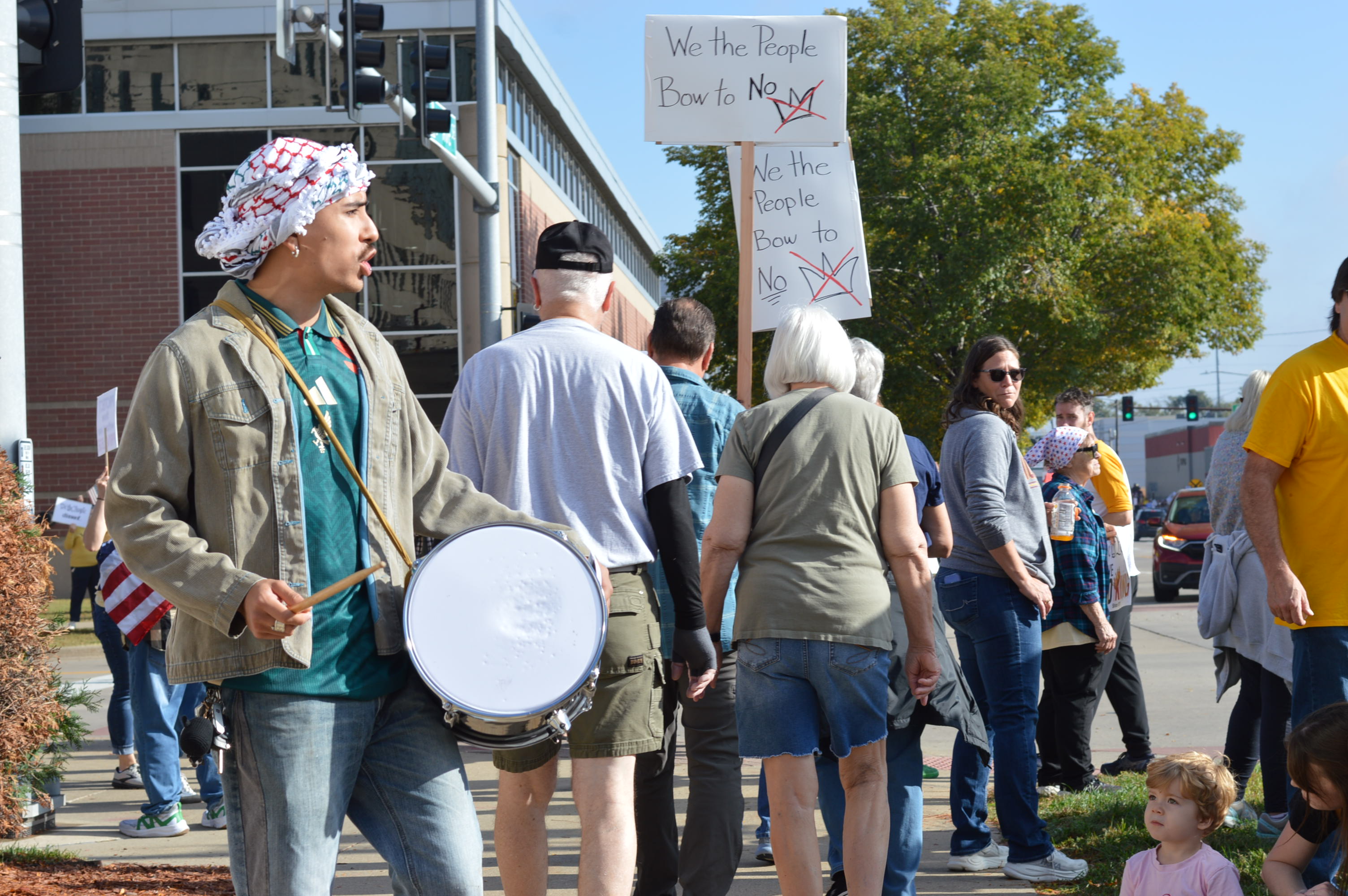 Drummer Slayton Thompson arrived by 8 a.m. and kept the crowd rocking with music, while some of the demonstrators burst into song with “God Bless America.”
