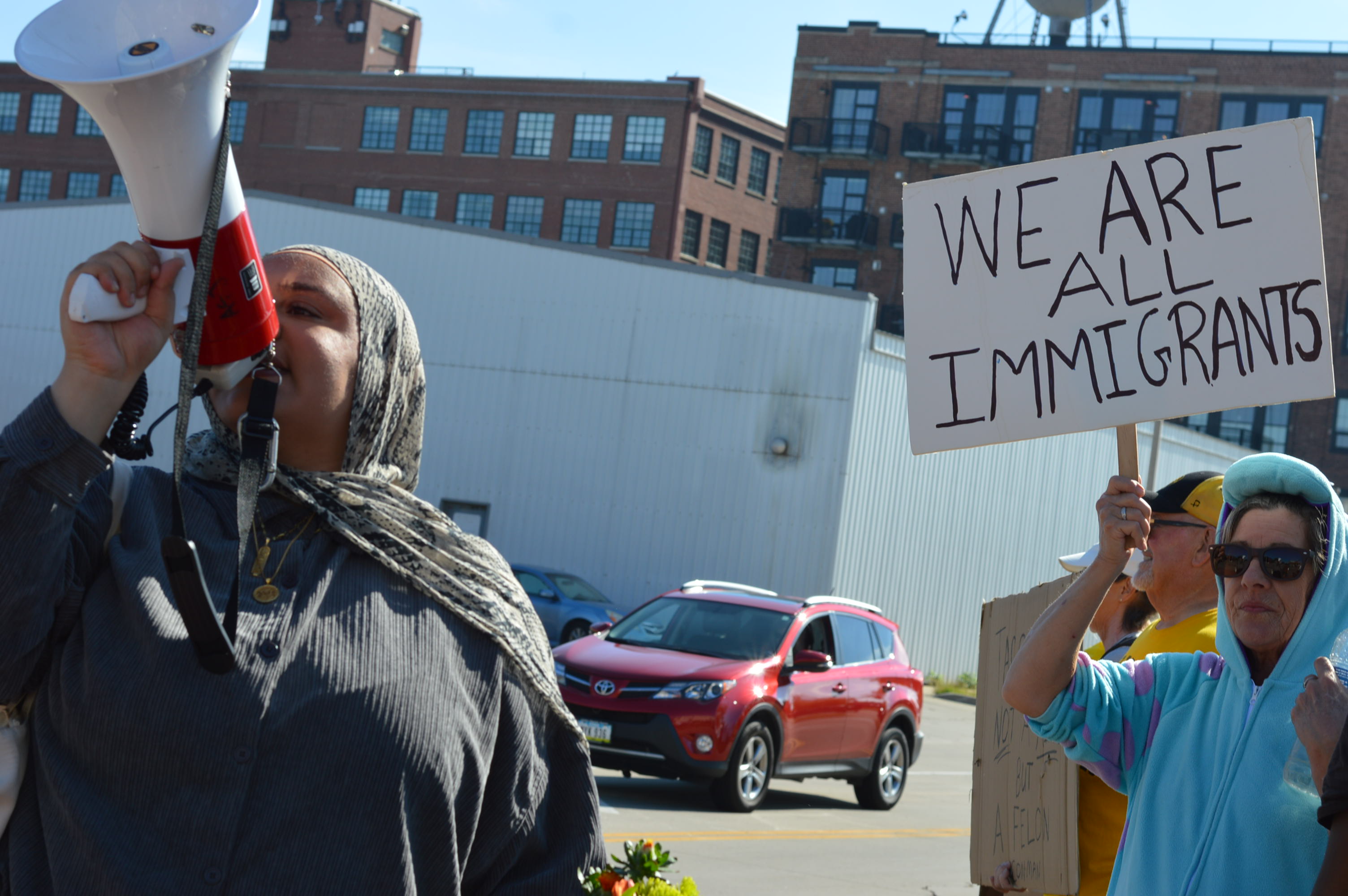 As the two-hour protest ended, demonstrators marched down Second Street SE, past the federal courthouse to First Street, where they were temporarily stopped by police before being allowed to continue.